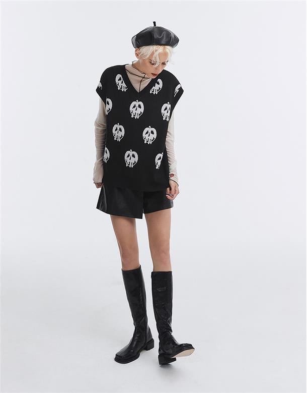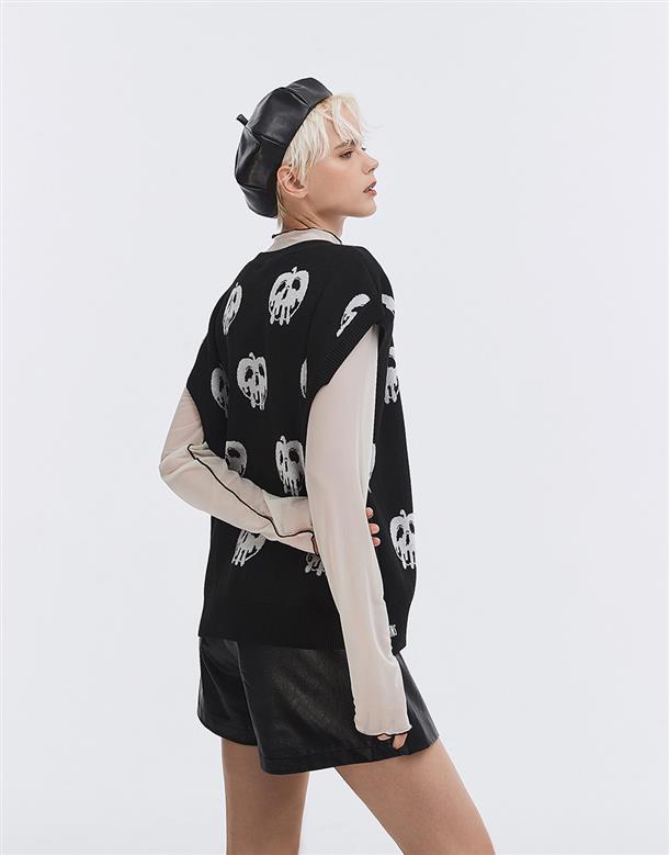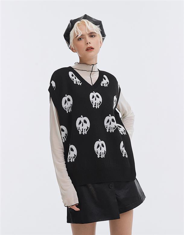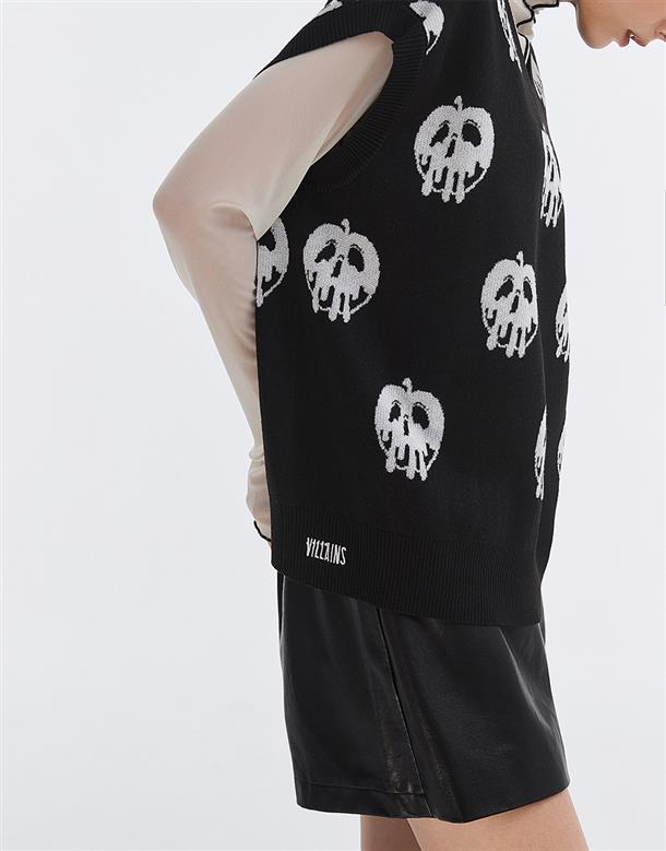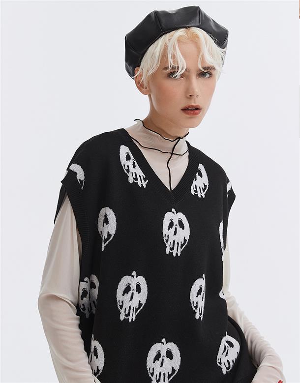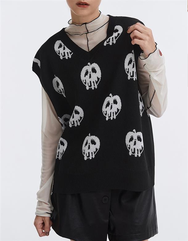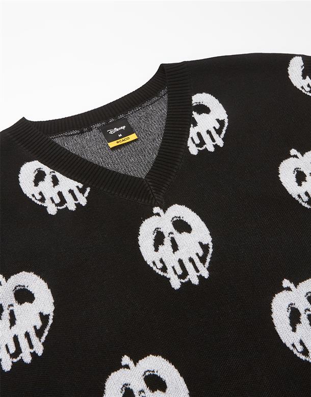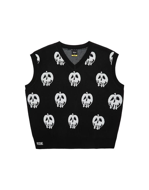 飽妮&迪士尼反派聯名-滿版毒蘋果提花,高品質V領針織背心,舒適柔軟款穿搭款。