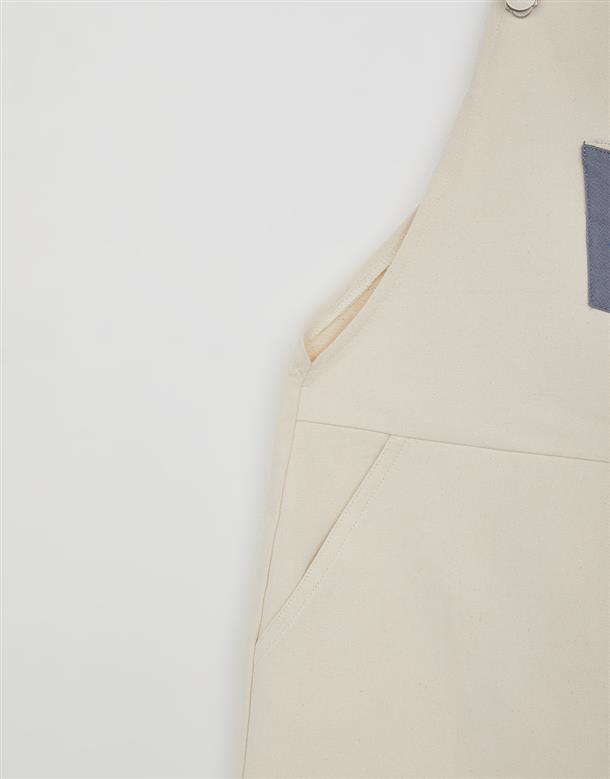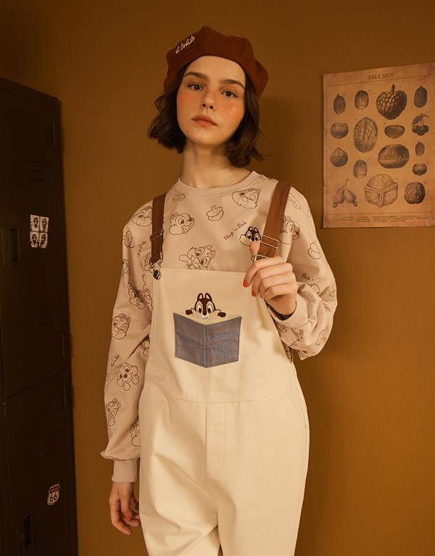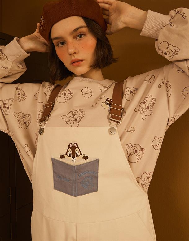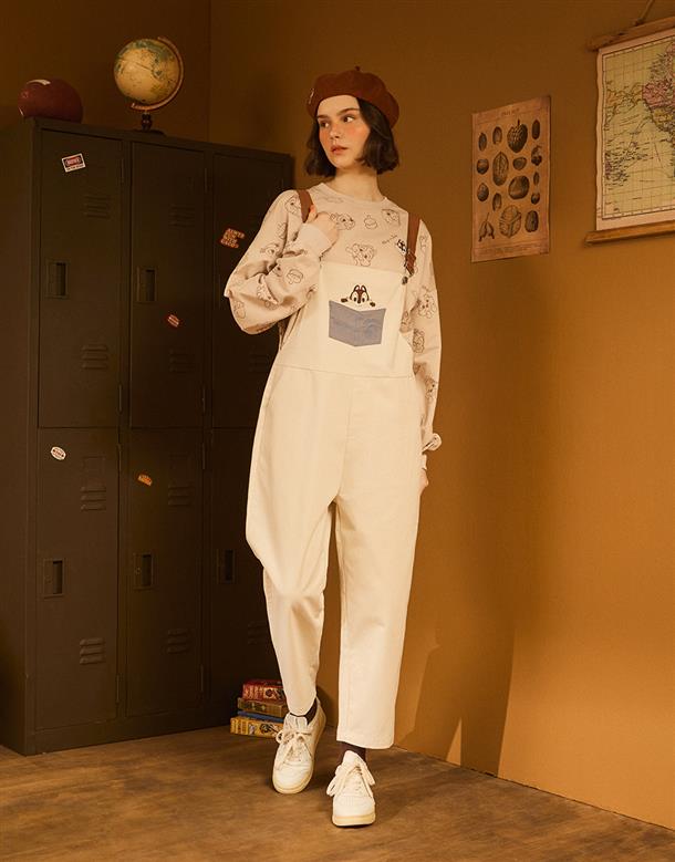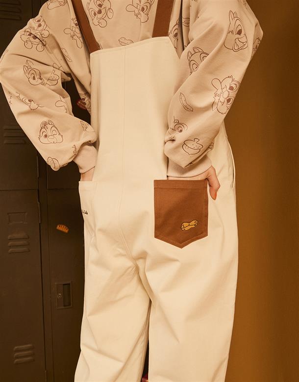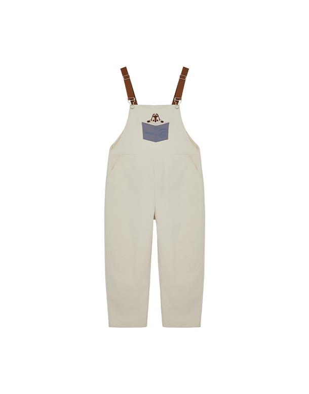 奇奇蒂蒂系列,趣味口袋,斜紋洗水吊帶褲,撞色率性連身款。