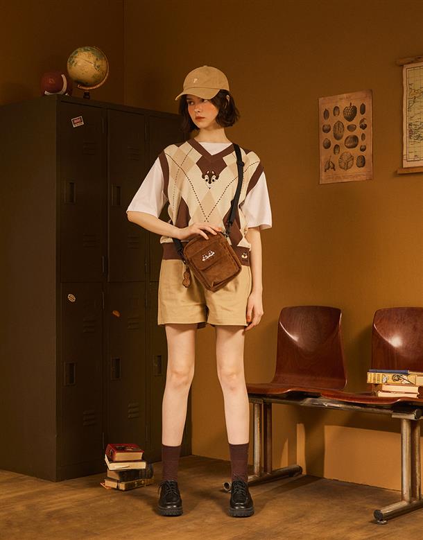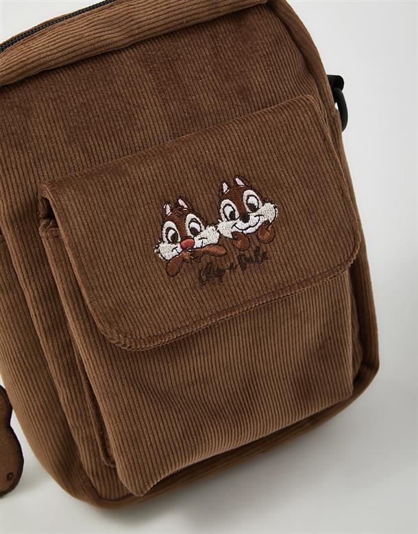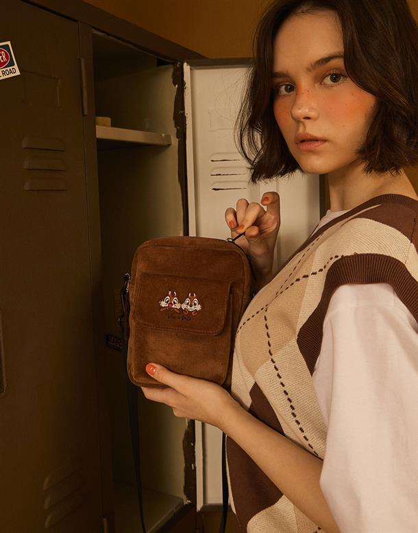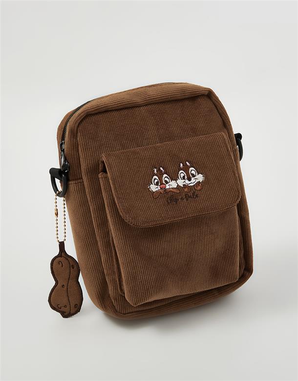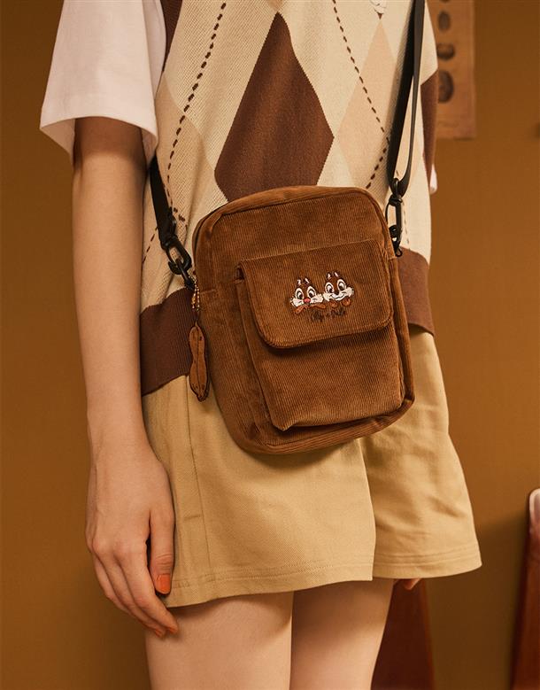 奇奇蒂蒂系列,精緻電繡,燈心絨面料斜背包。
