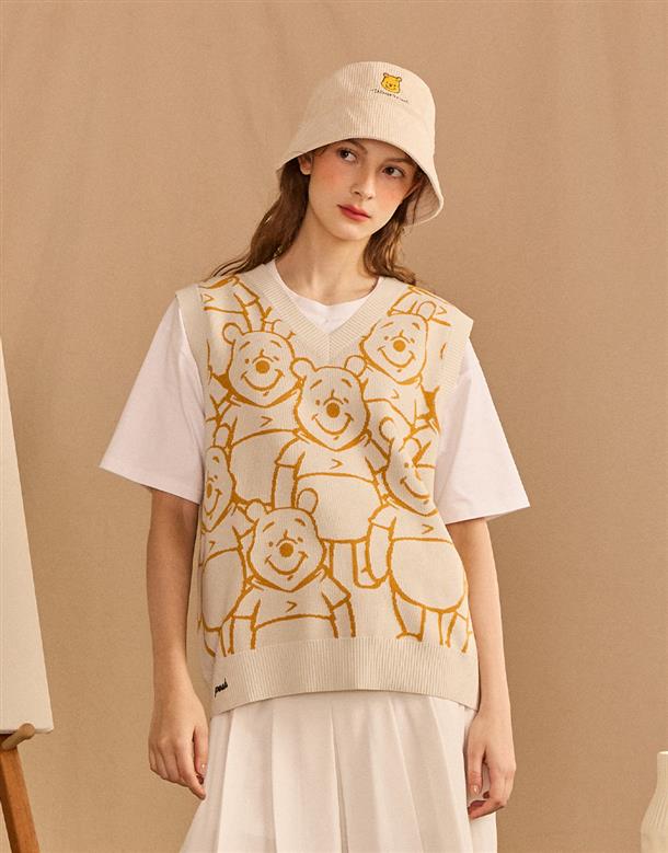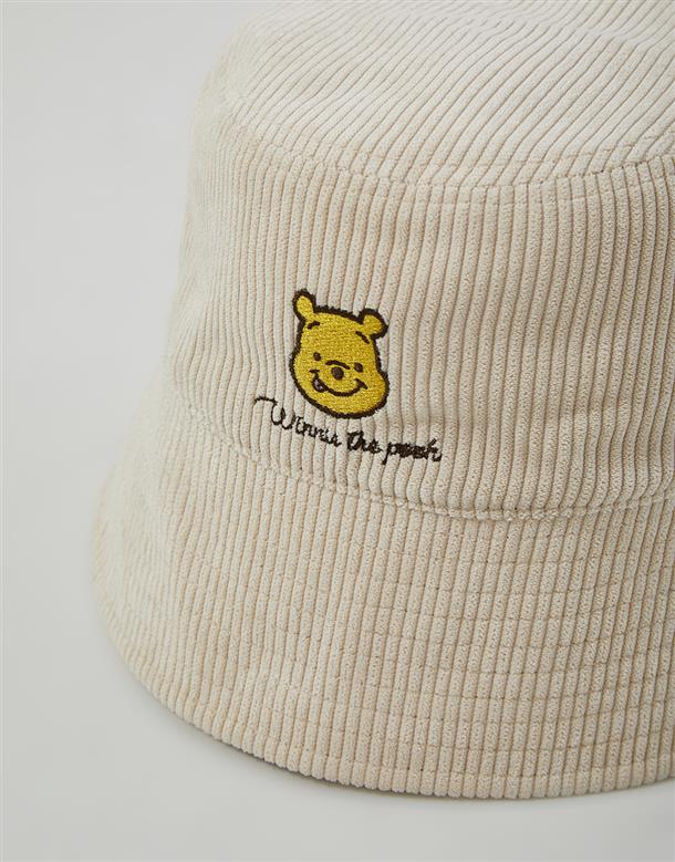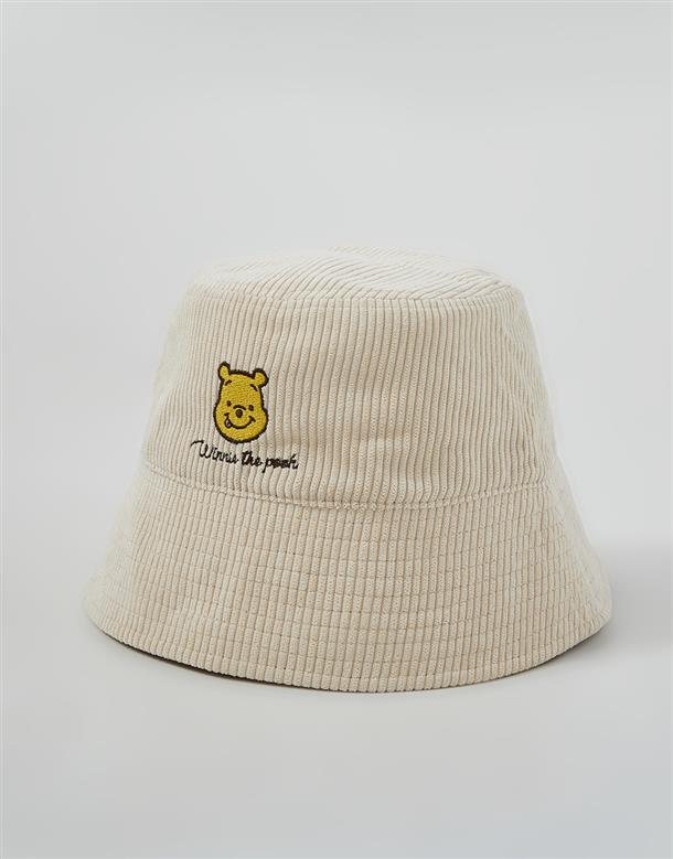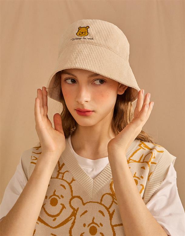 維尼漁夫帽,柔軟燈芯絨面料,質感維尼電繡,時尚穿搭款。