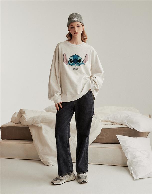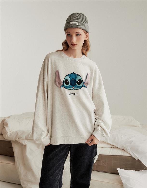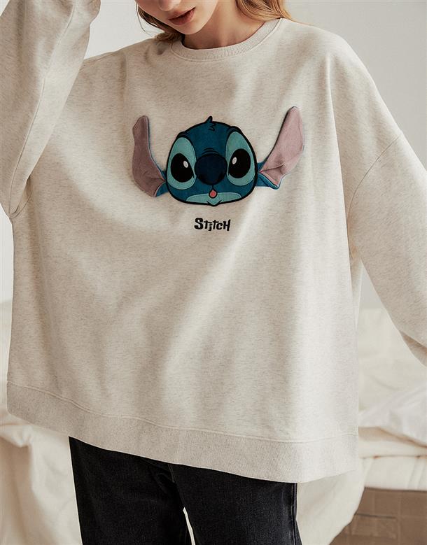 史迪奇立體耳朵設計,貼布電繡細緻工藝,薄刷毛寬鬆大學TEE。