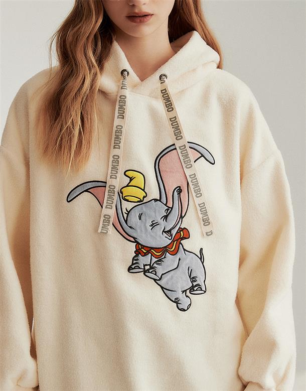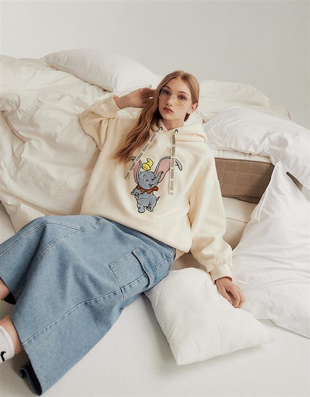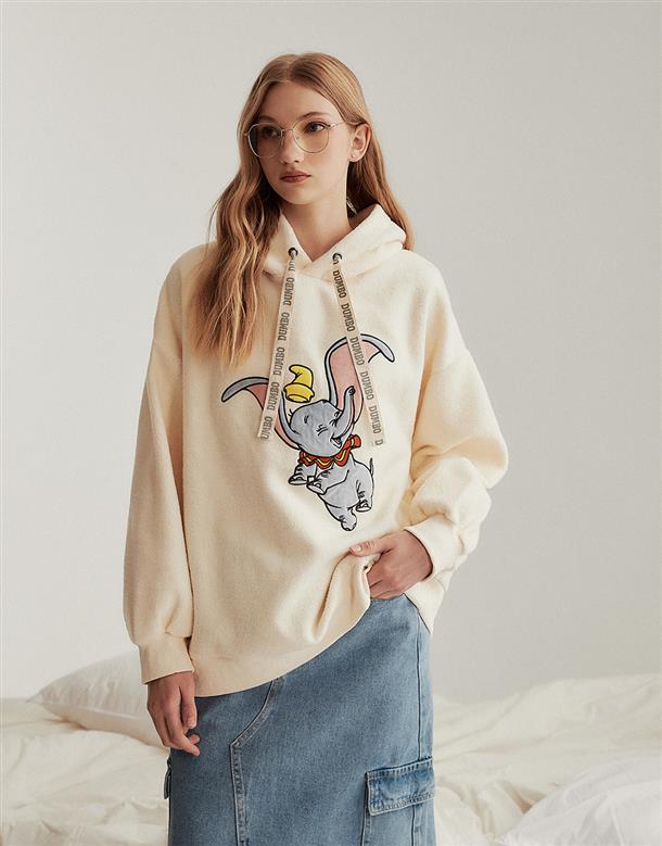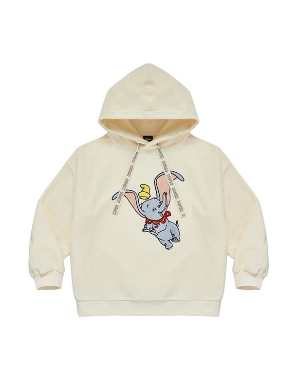 小飛象質感貼布繡,趣味帽繩設計,舒適棉絨面料,寬鬆落肩帽TEE。
