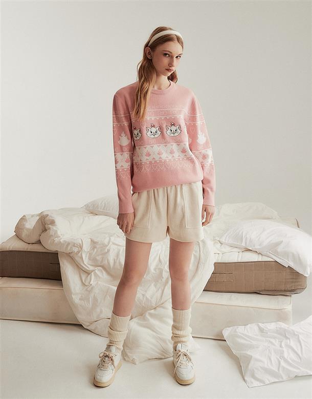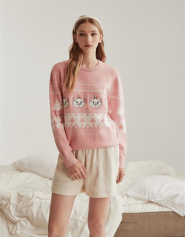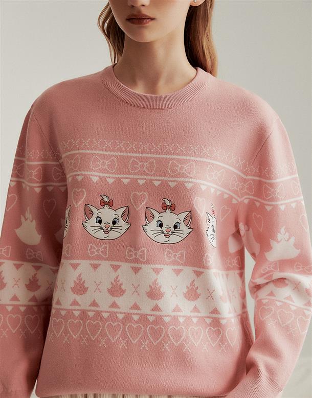 瑪麗貓趣味醜毛衣,貼布電繡設計,舒適寬鬆毛衣。