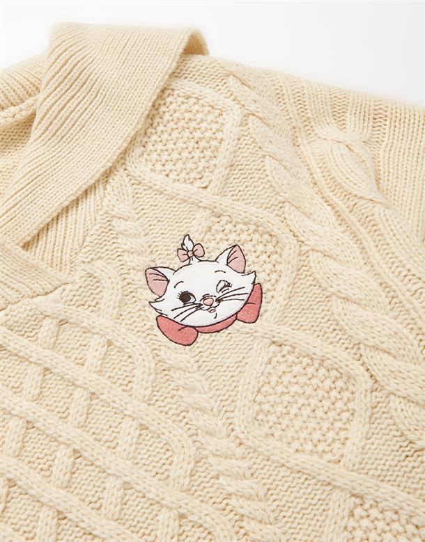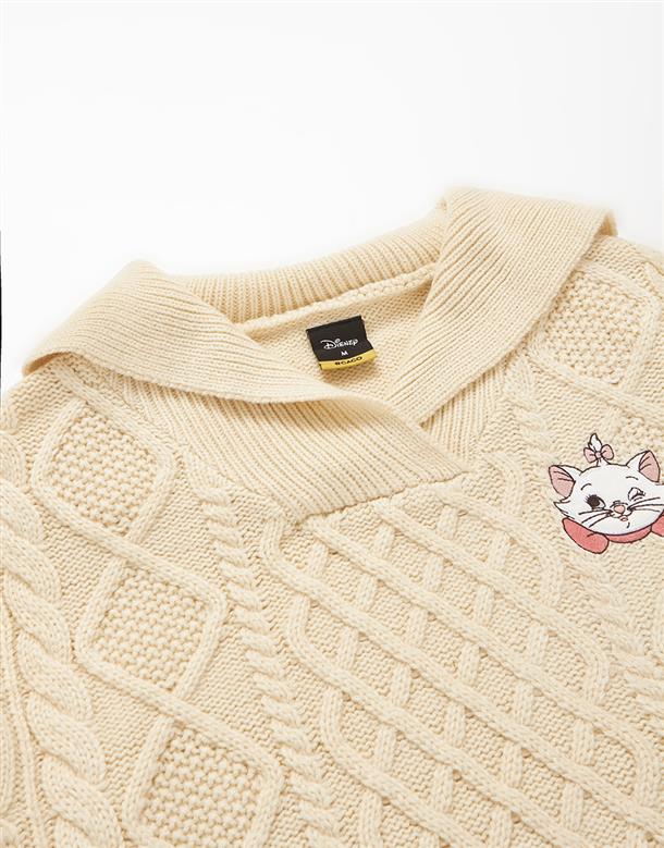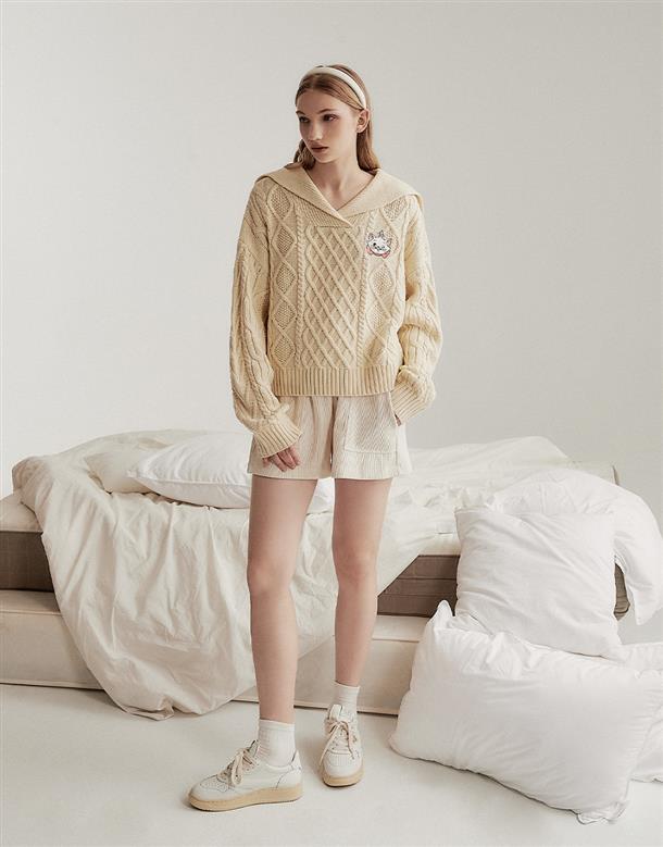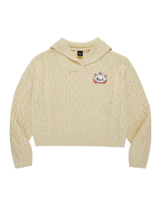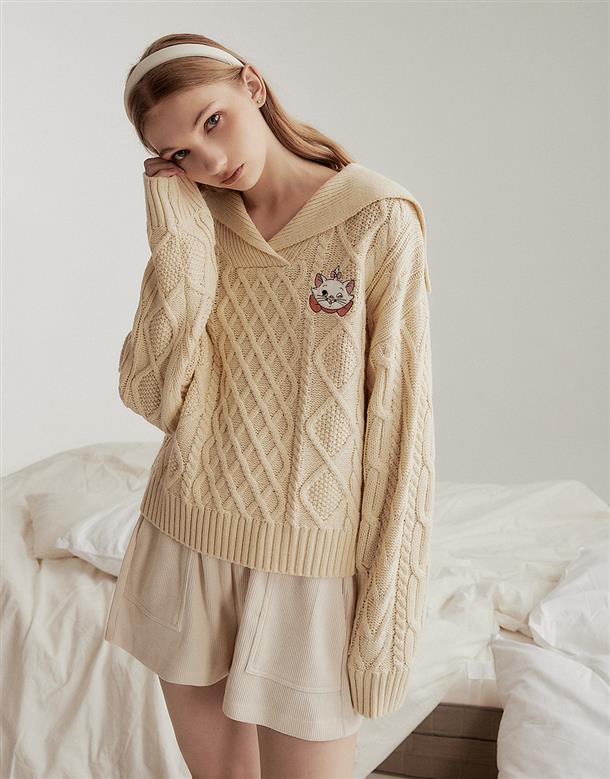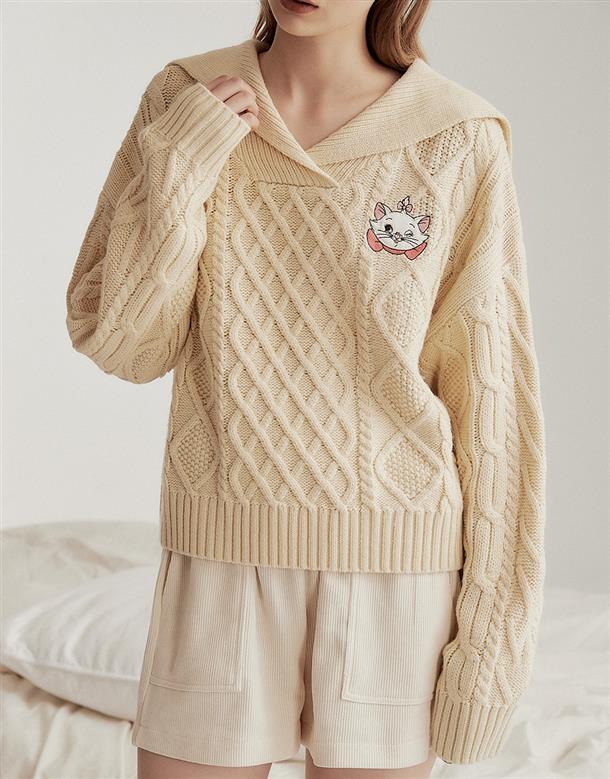 瑪麗貓麻花毛衣,日系水手翻領設計,細緻貼布電繡,舒適寬鬆毛衣。
