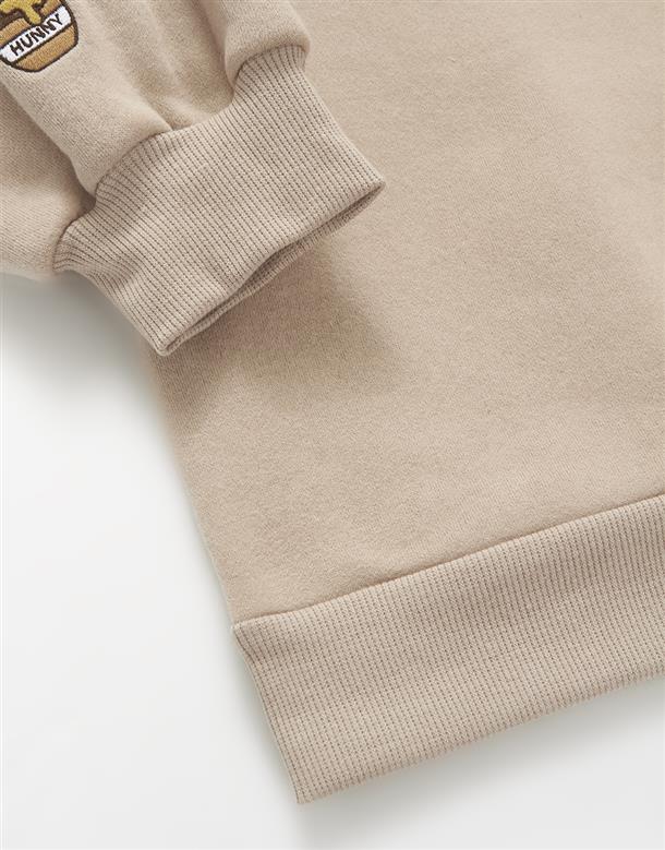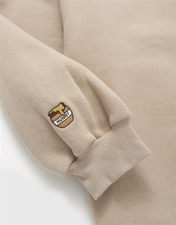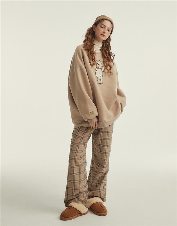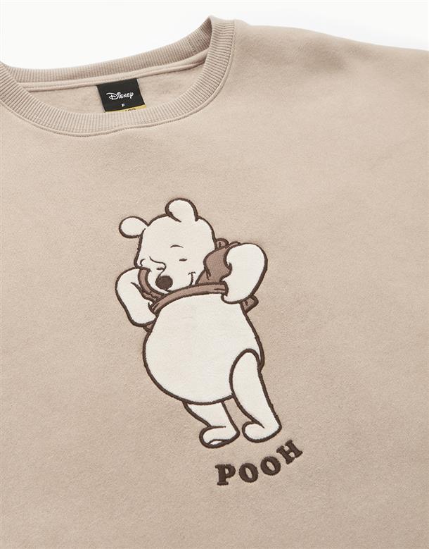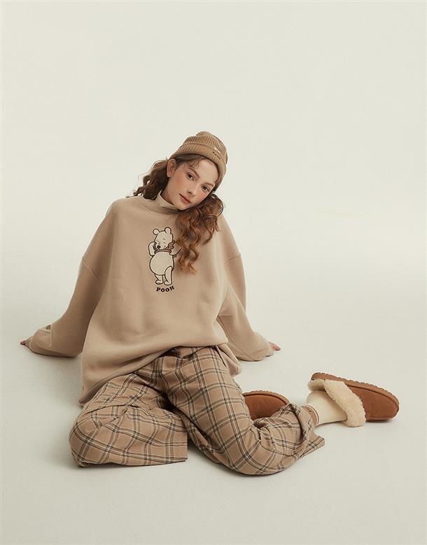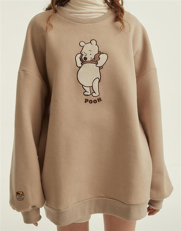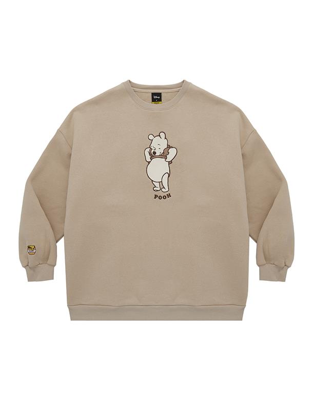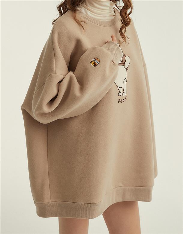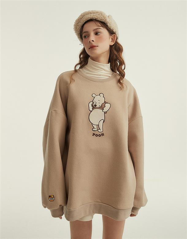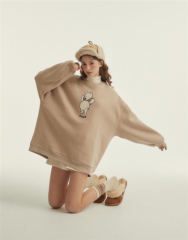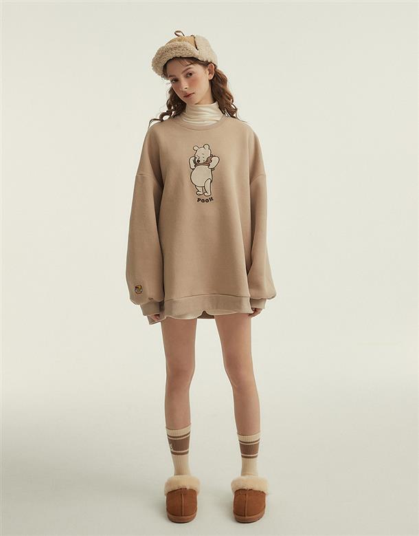 粿粿x奶茶維尼系列,維尼絨面貼布繡,內刷毛質感面料,寬鬆蓋臀可當洋裝的版型設計。