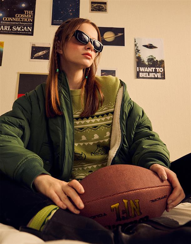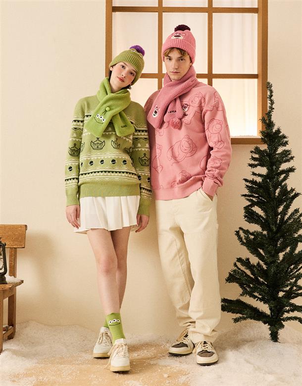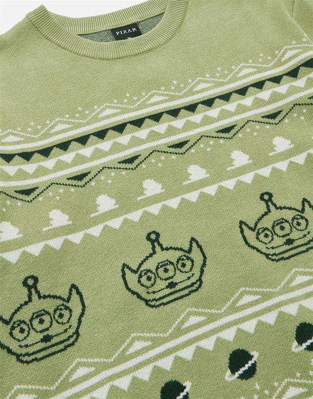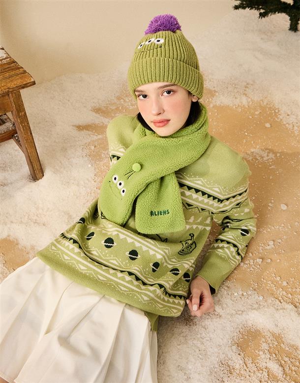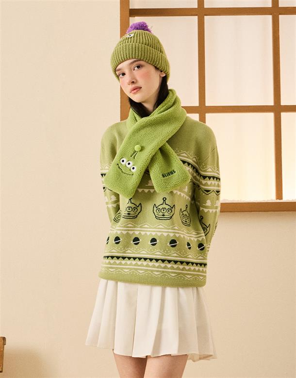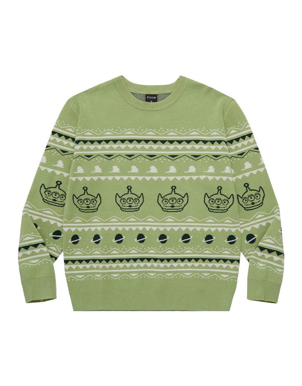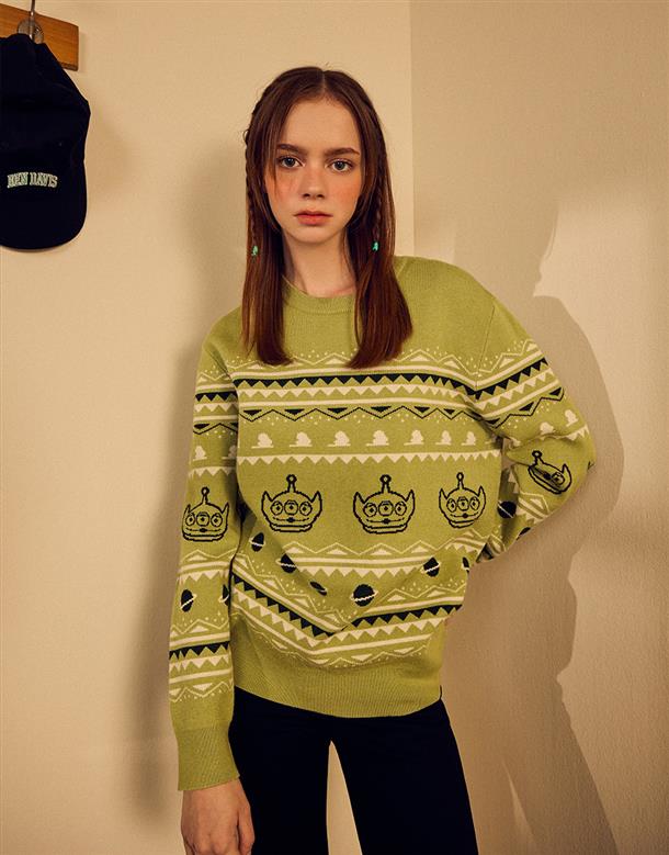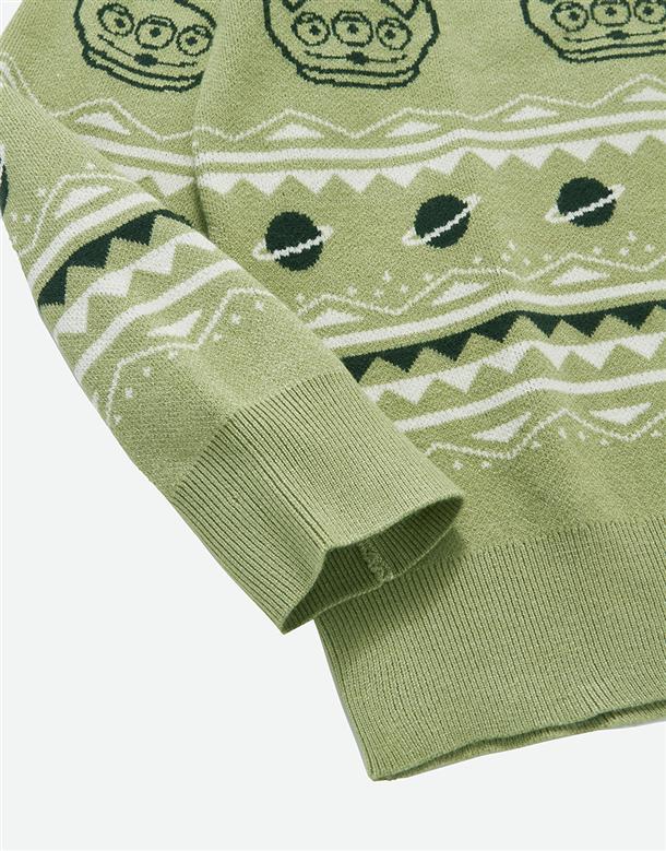 三眼怪圖騰編排,聖誕穿搭醜毛衣,舒適提花針織款。