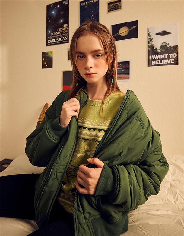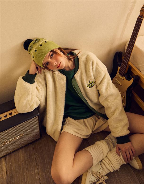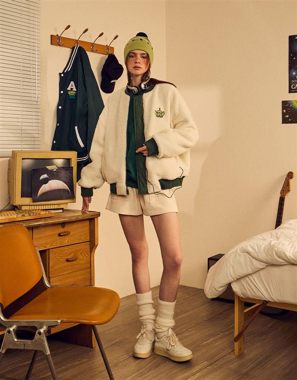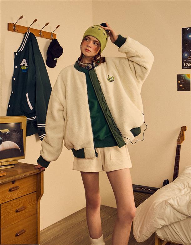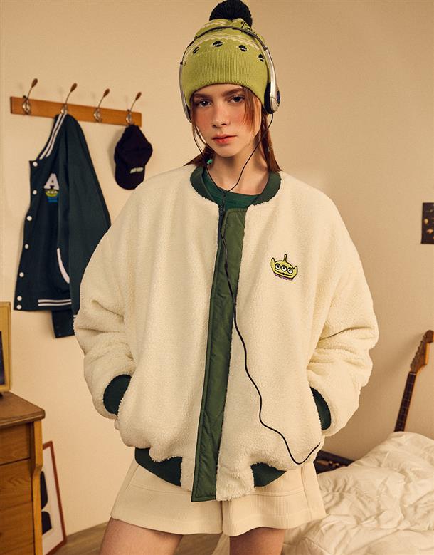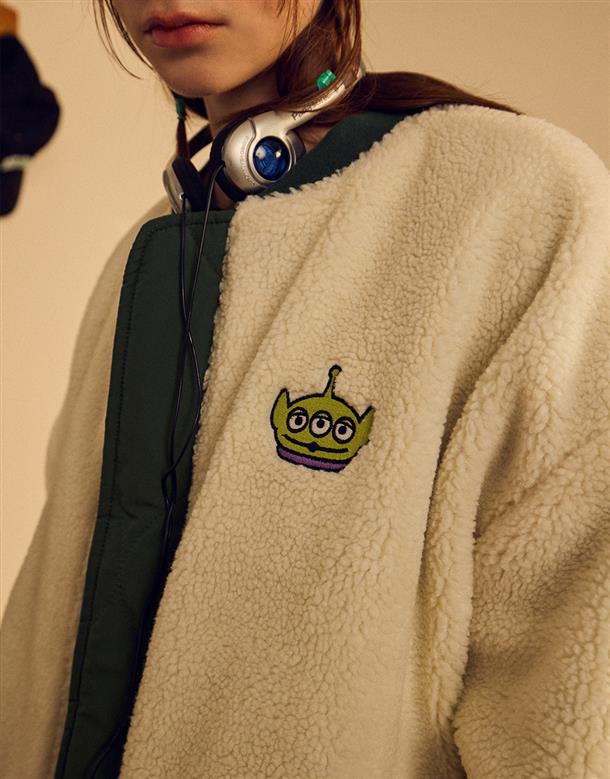 三眼怪雙面穿外套,QQ毛拼接風衣面料,率性保暖穿搭款。