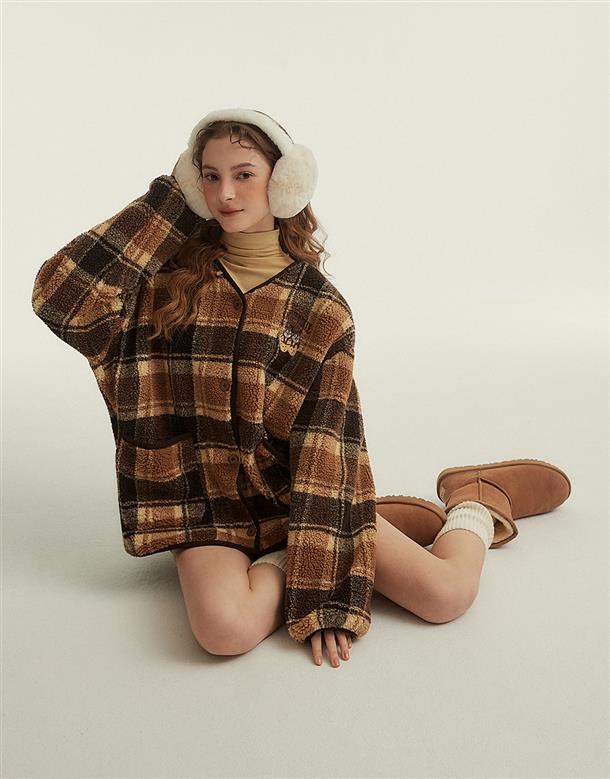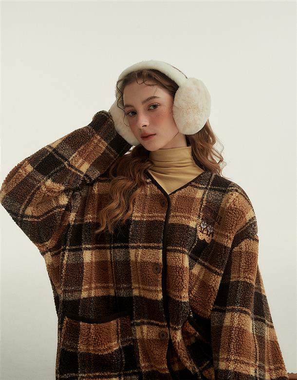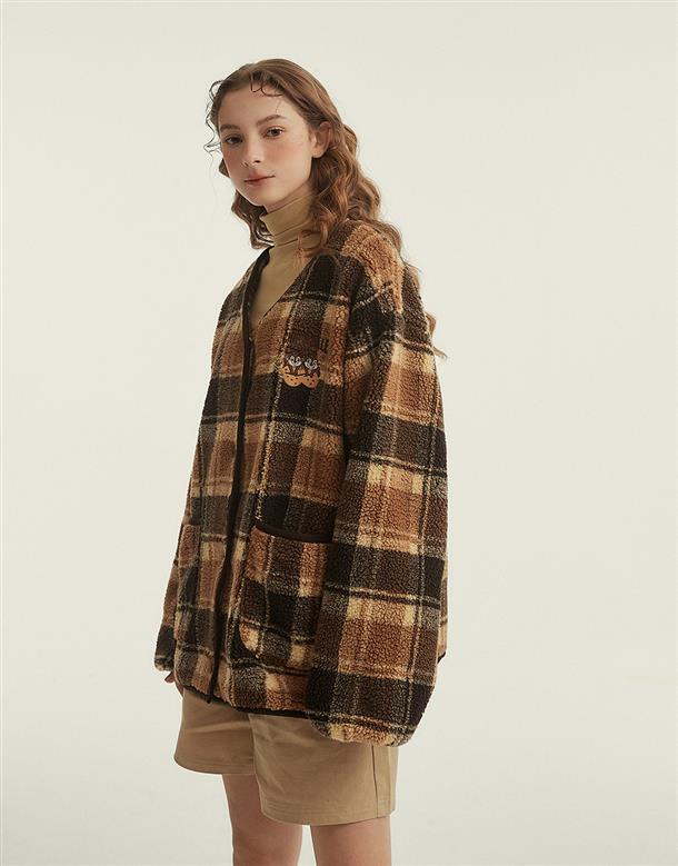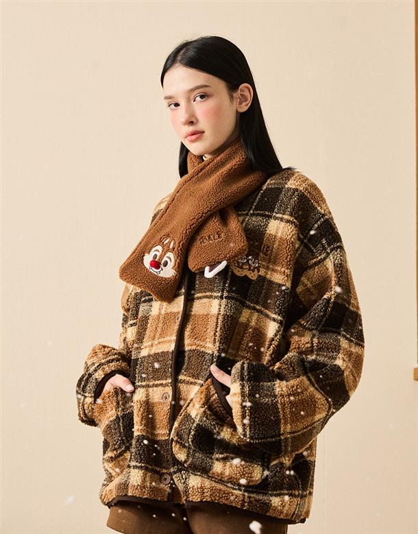 奇奇蒂蒂羊羔絨外套,胸前精緻電繡,舒適保暖。