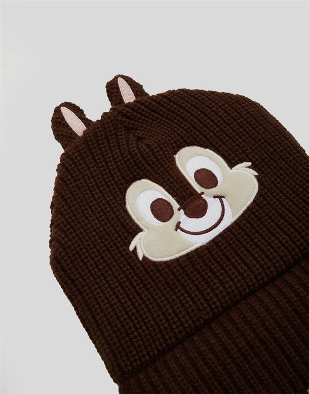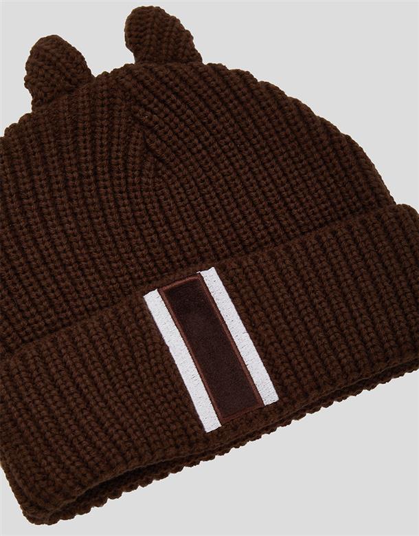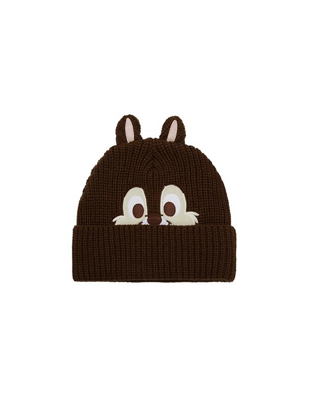 奇奇大臉貼布,造型耳朵,趣味毛織毛帽。