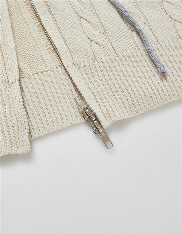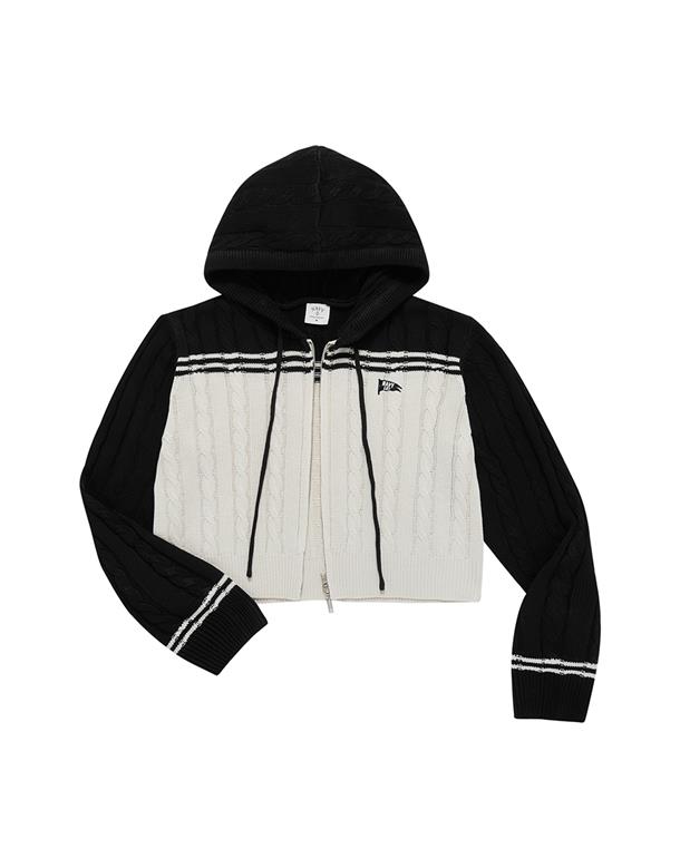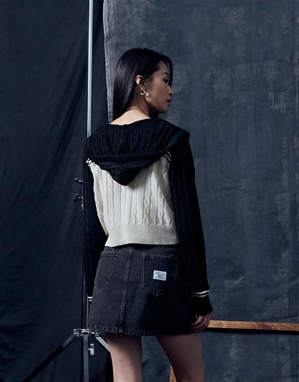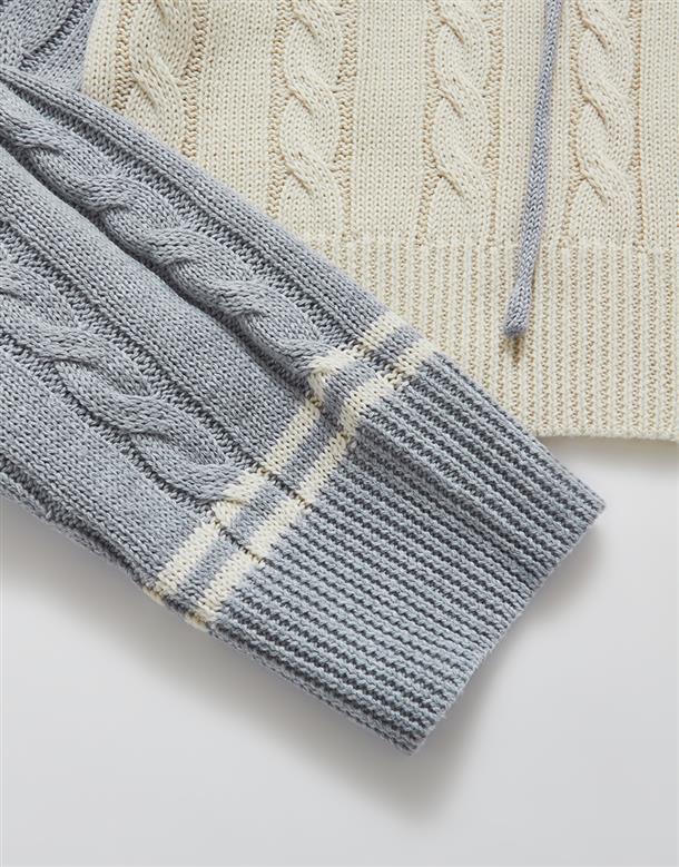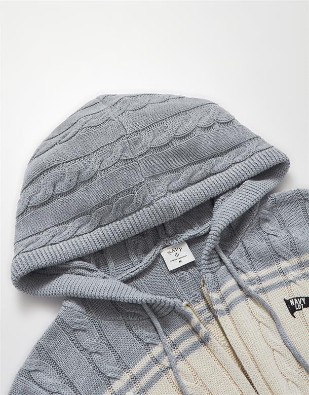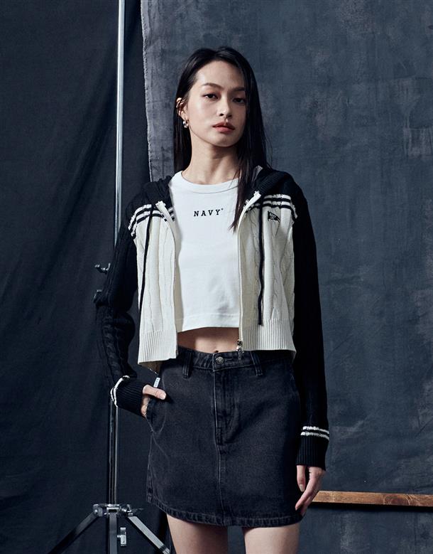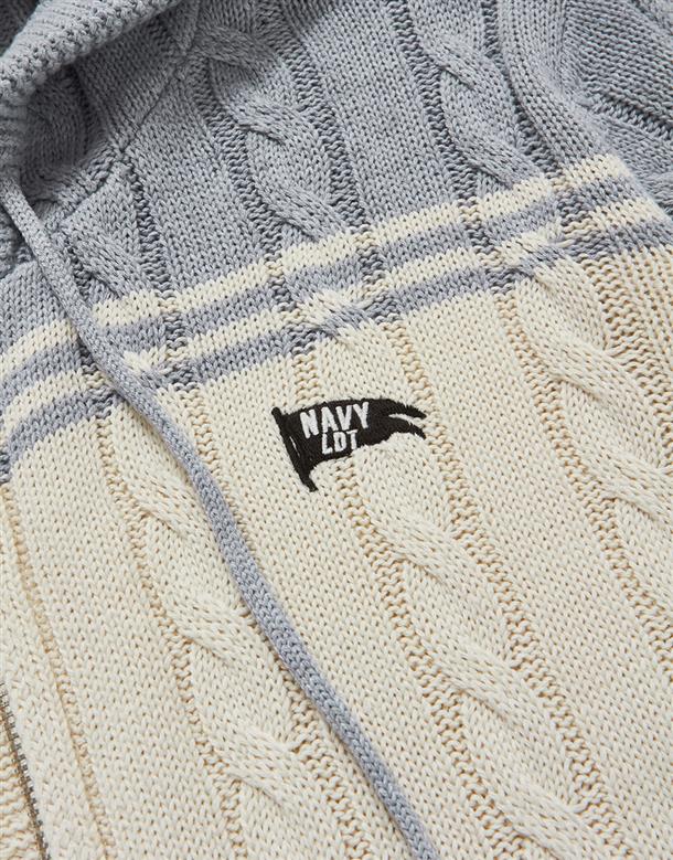 趨勢流行麻花針織外套,配色條紋跟精緻電繡設計搭配合身短版連帽休閒的NAVY GIRL風格。