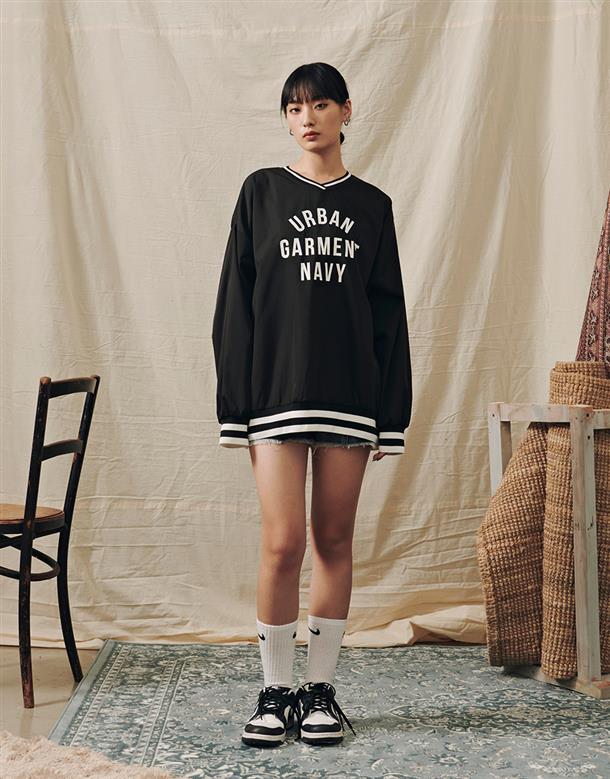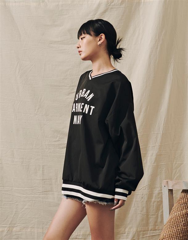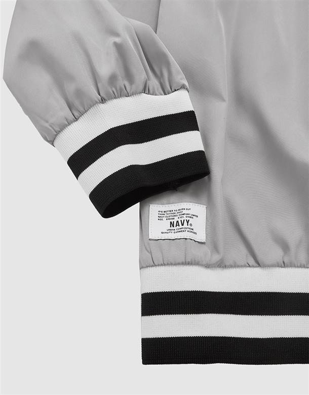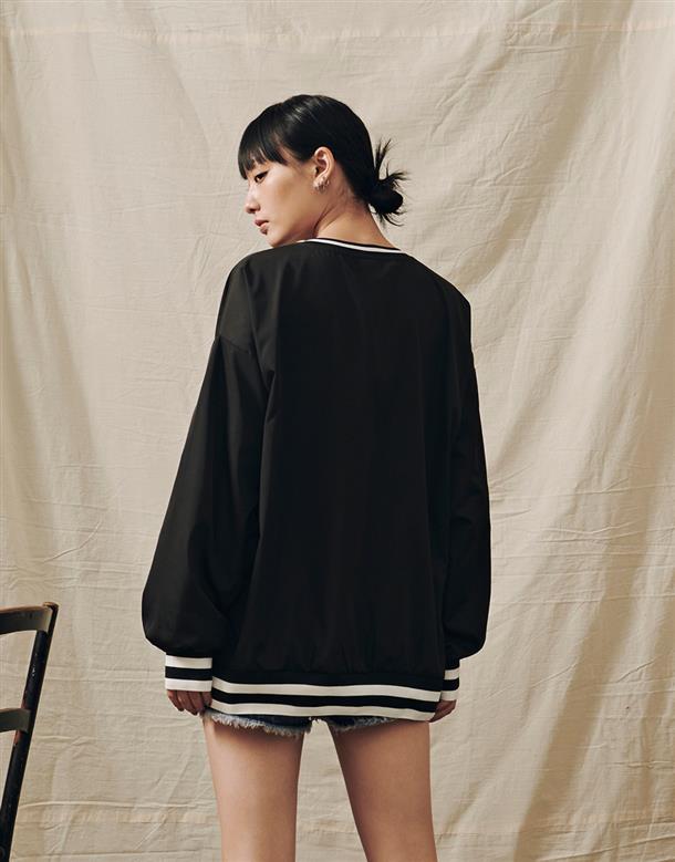 條紋羅紋配色設計,V領寬鬆修飾版型,搭配趨勢流行風衣材質布料。