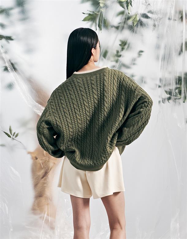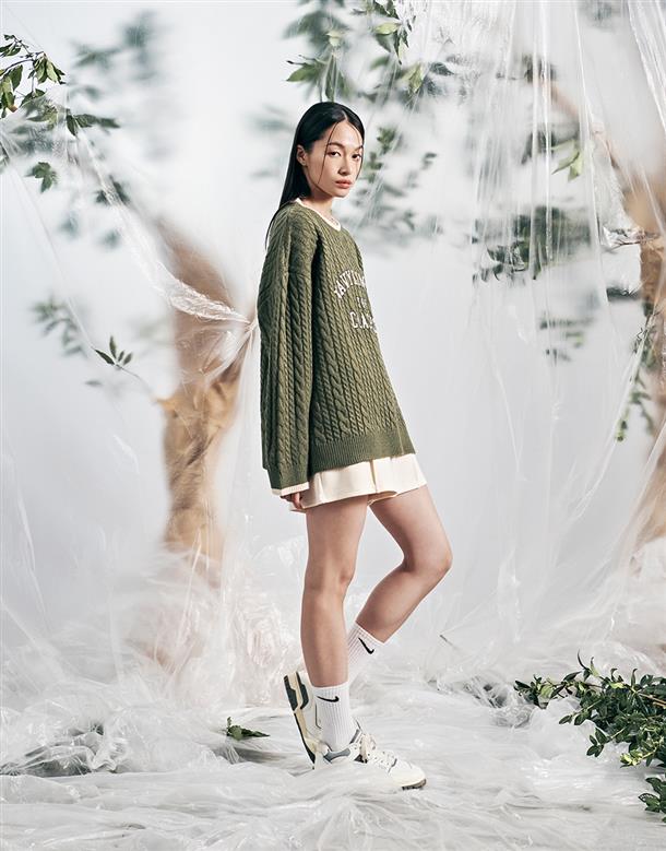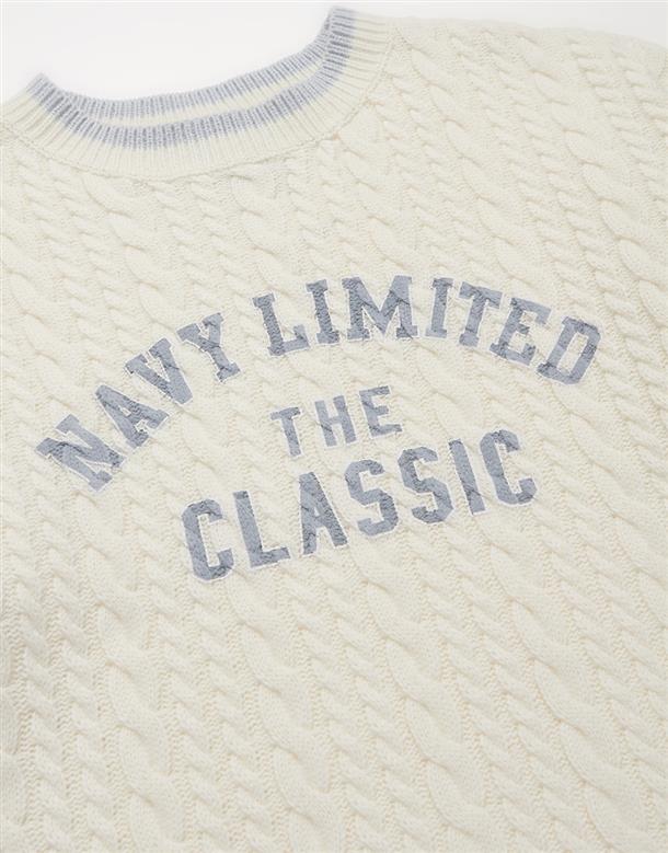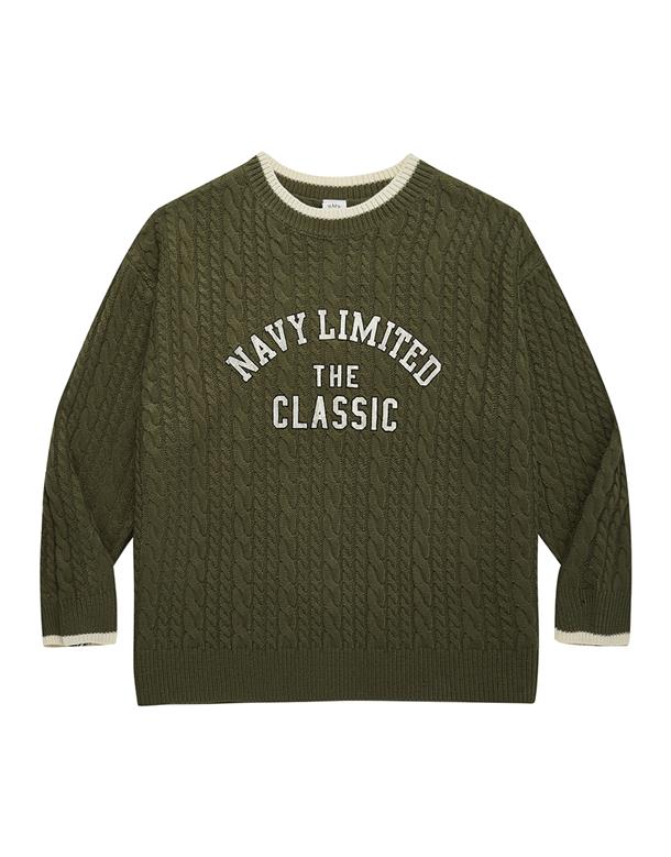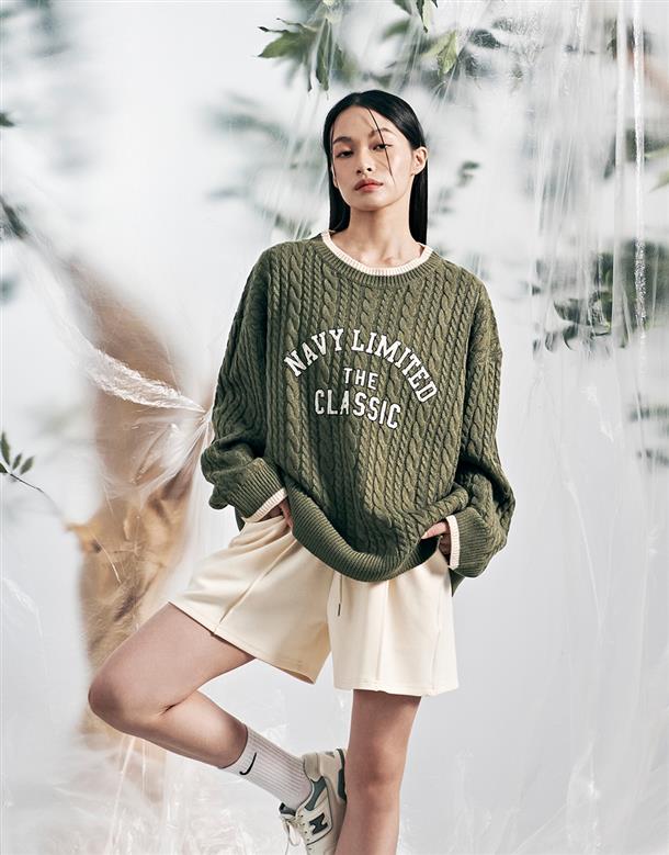 柔軟麻花毛織,撞色印花設計,NAVYGIRl落肩寬鬆穿搭毛衣。