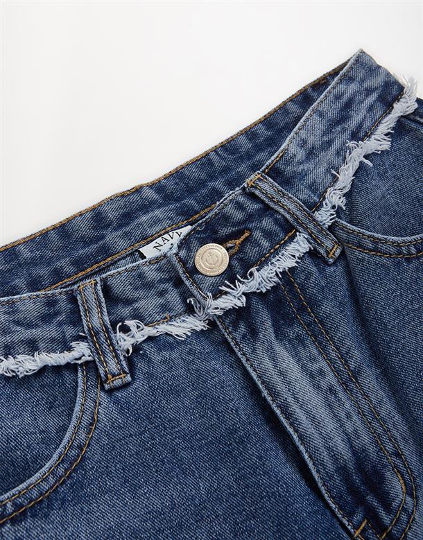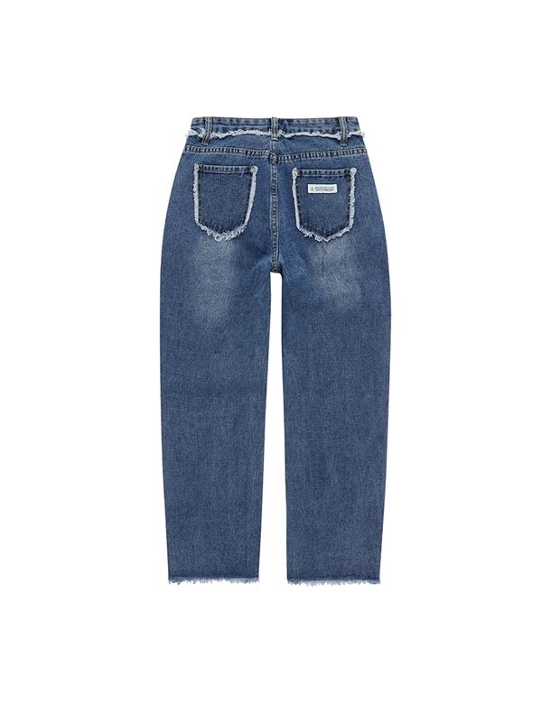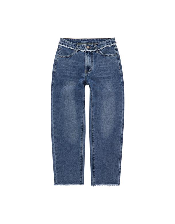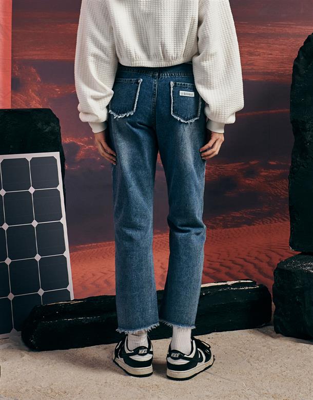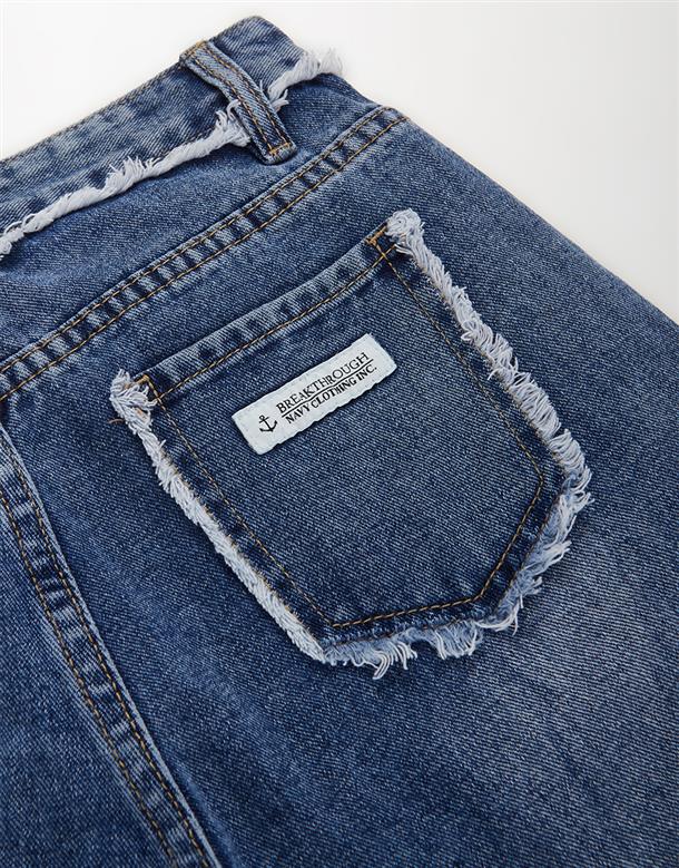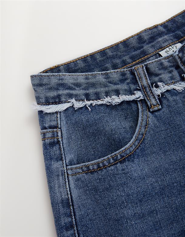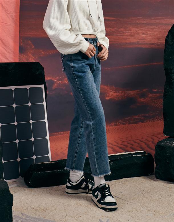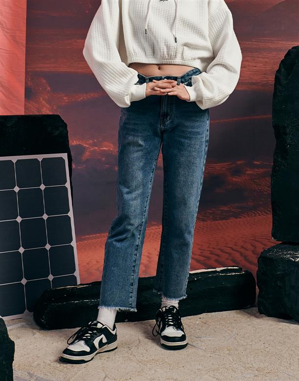 質感牛仔面料,率性9分男友褲,鬚邊造型設計,NAVY GIRL時髦穿搭下身。