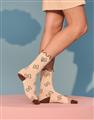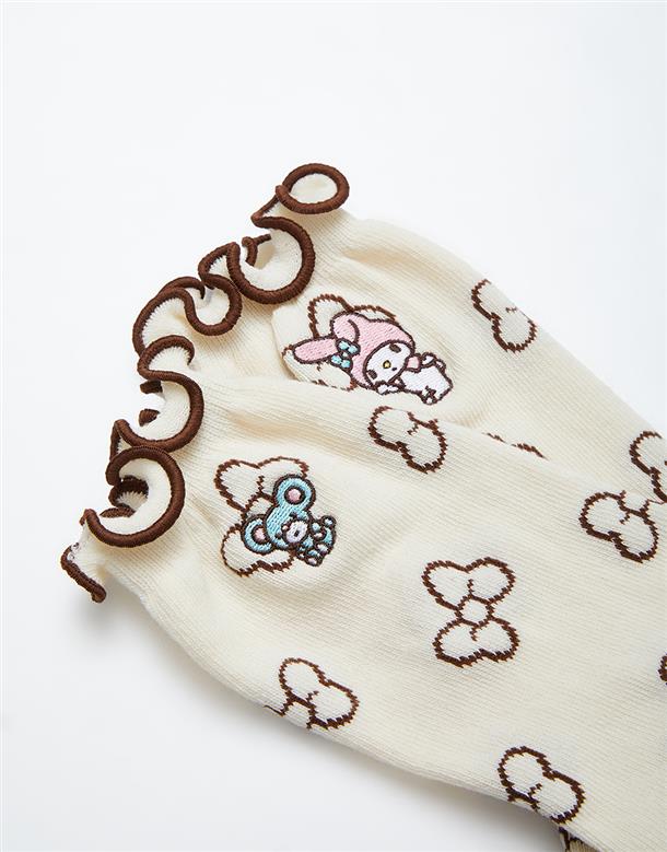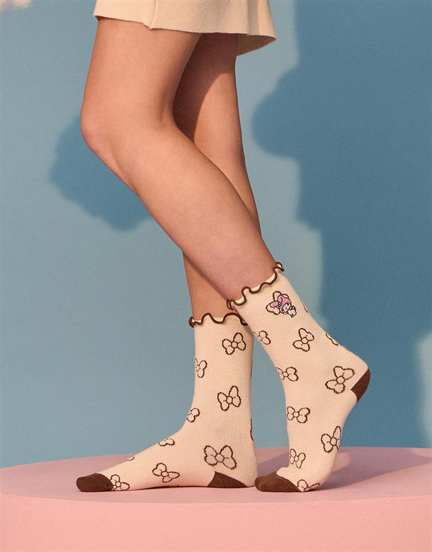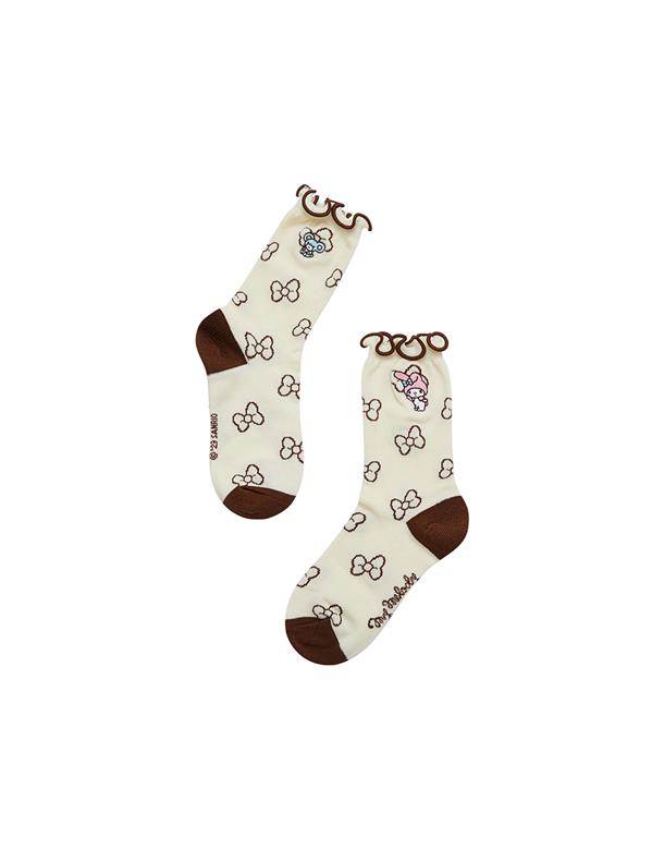 MIT美樂蒂系列,滿版蝴蝶結,精緻電繡,襪口捲邊中長襪。