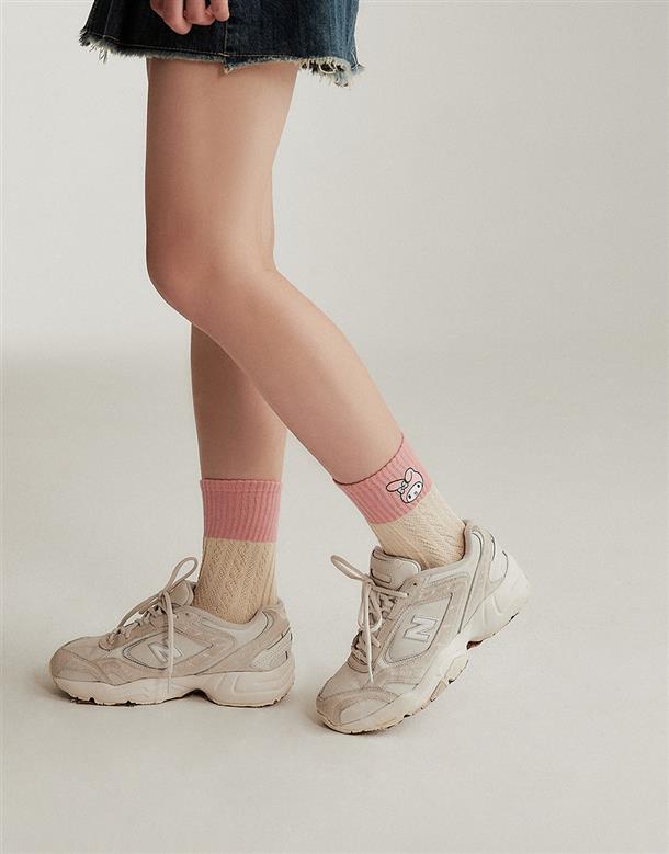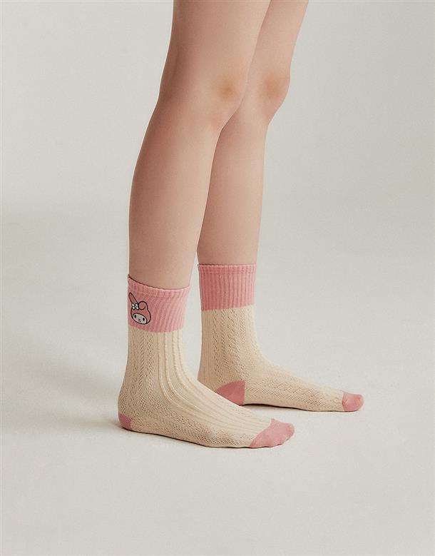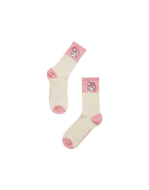 MIT美樂蒂系列,立體提花,精緻電繡,撞色中長襪。