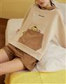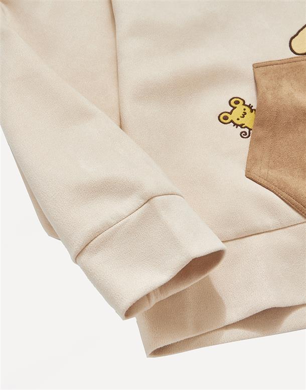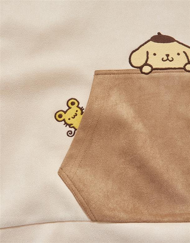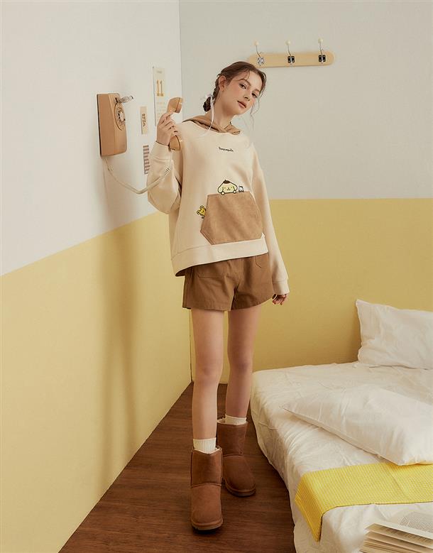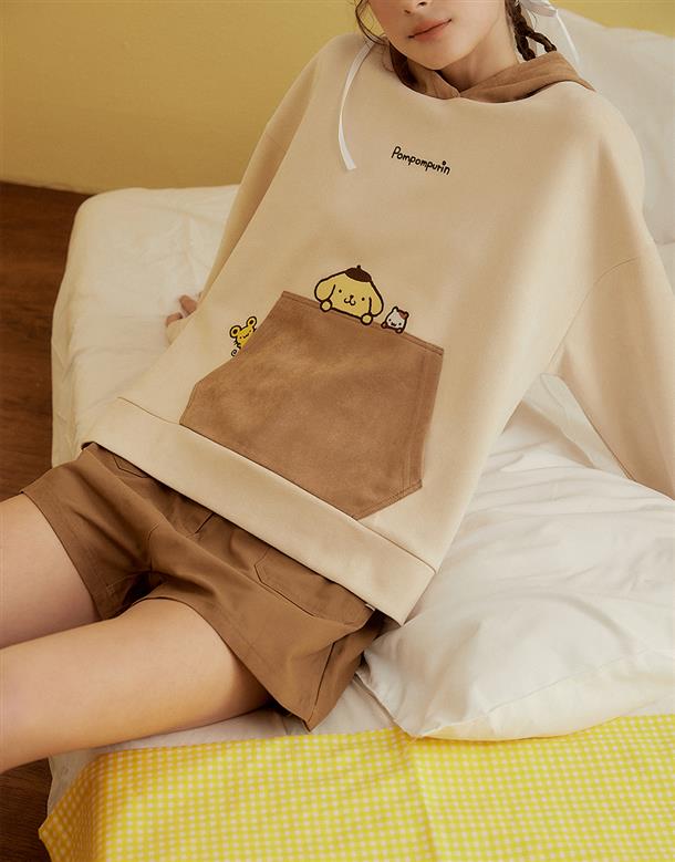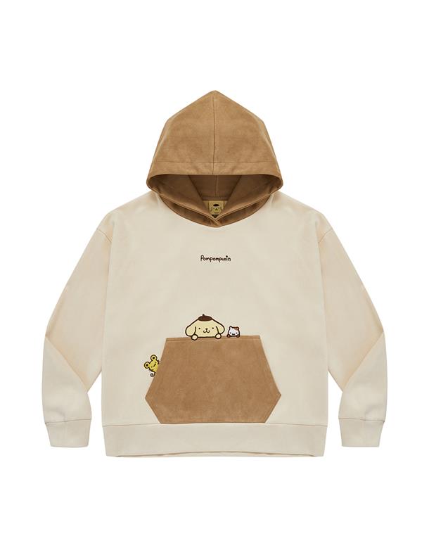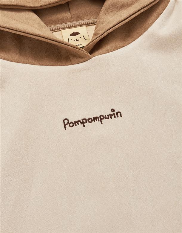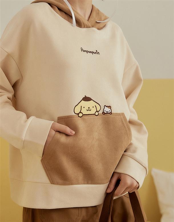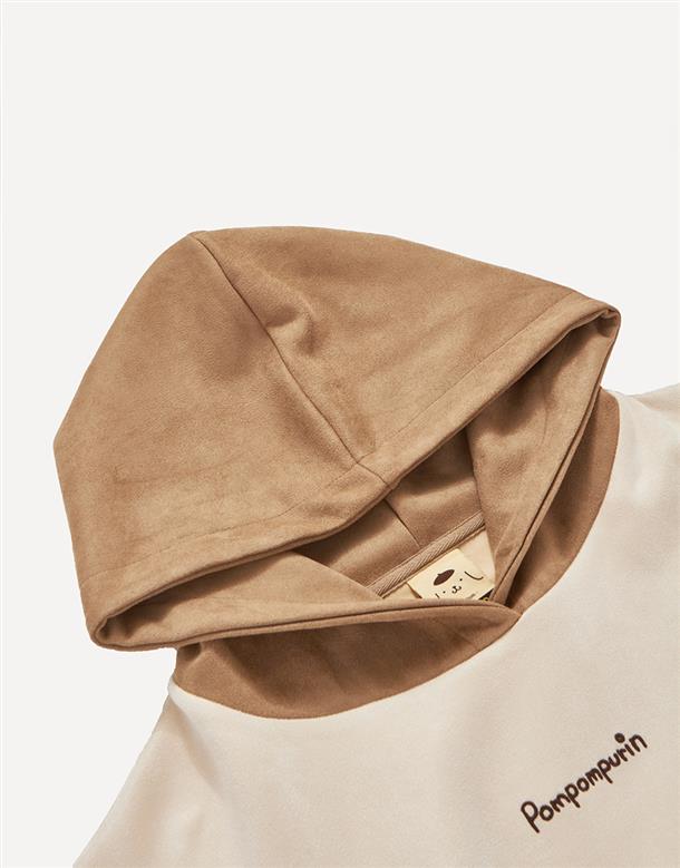 布丁狗可愛角色電繡,舒適麂皮絨撞色帽TEE。