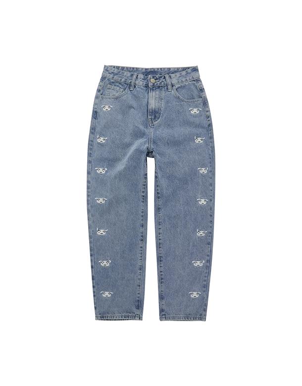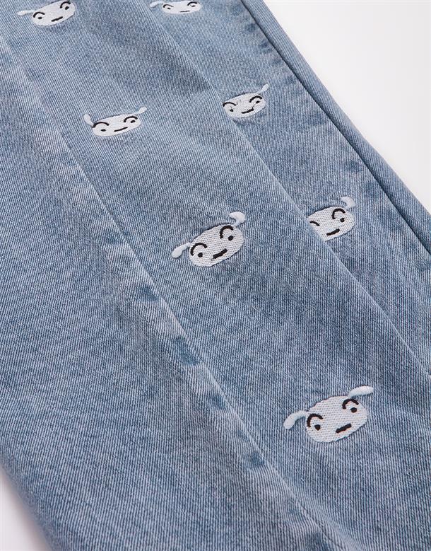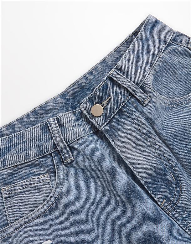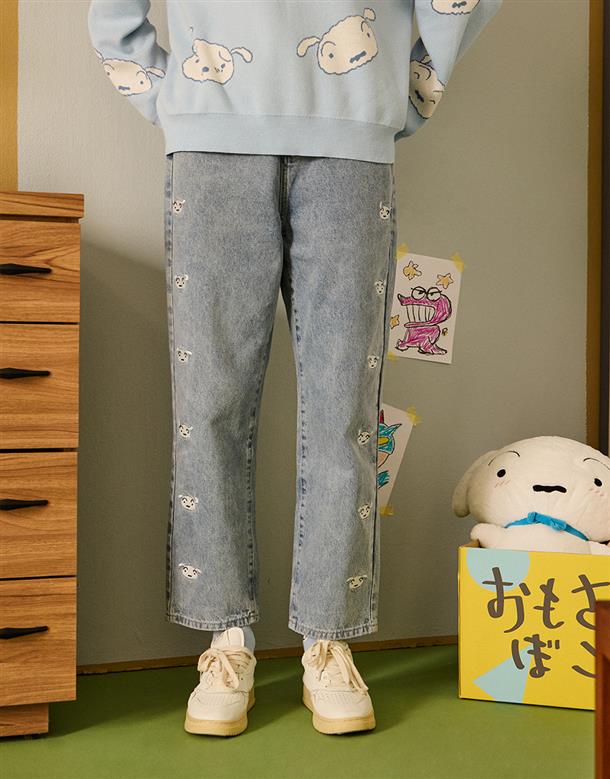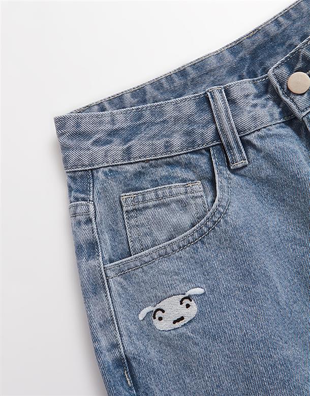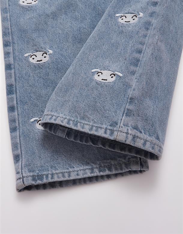 小白精緻電繡,男友風直筒版牛仔褲。