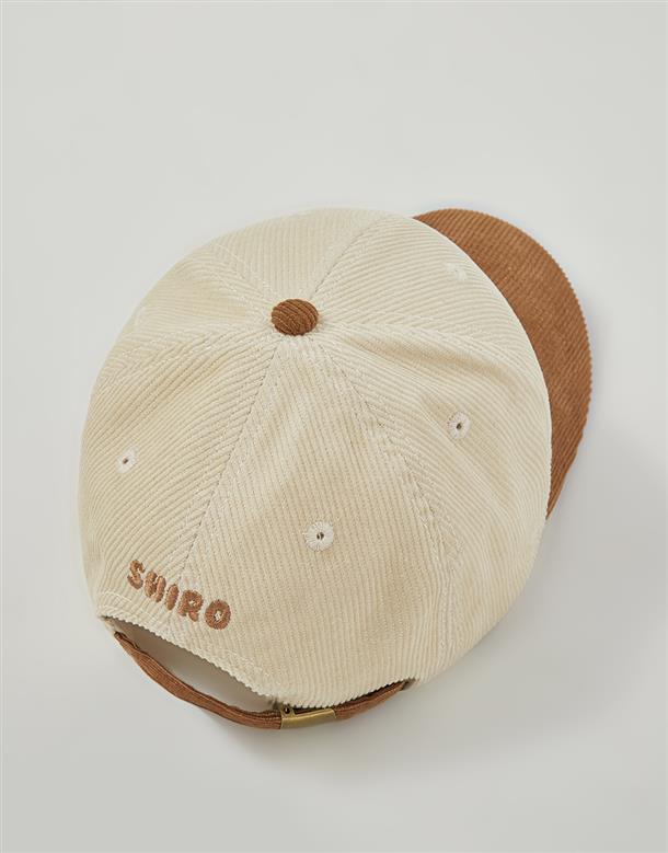 小白復古撞色老帽,質感貼布繡設計,燈芯絨百搭款。
