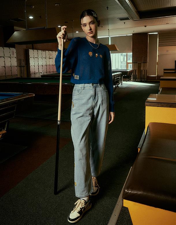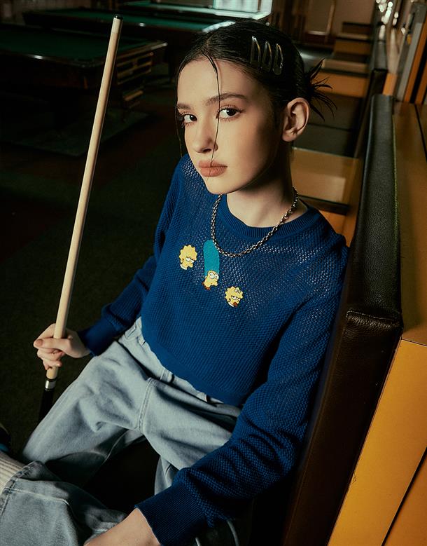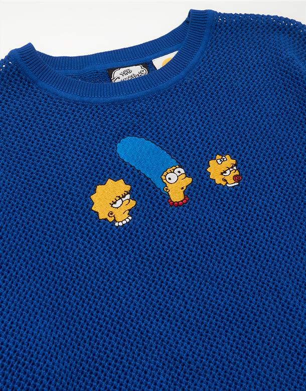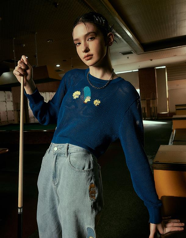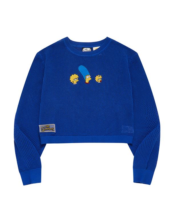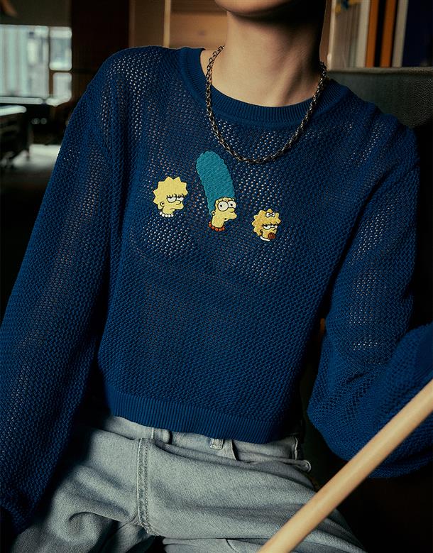 辛普森系列,辛普森家族趣味表情繡花,簍空織短版上衣,流行穿搭。