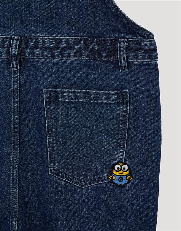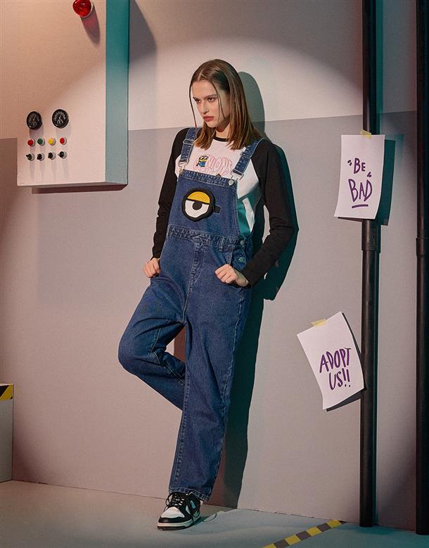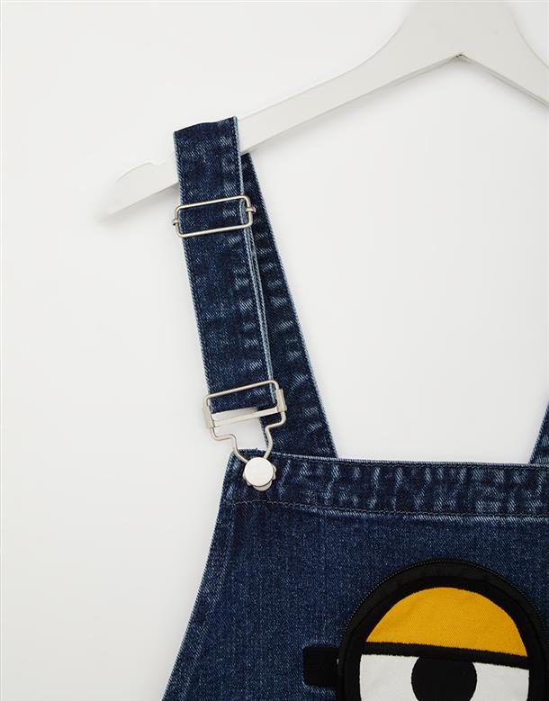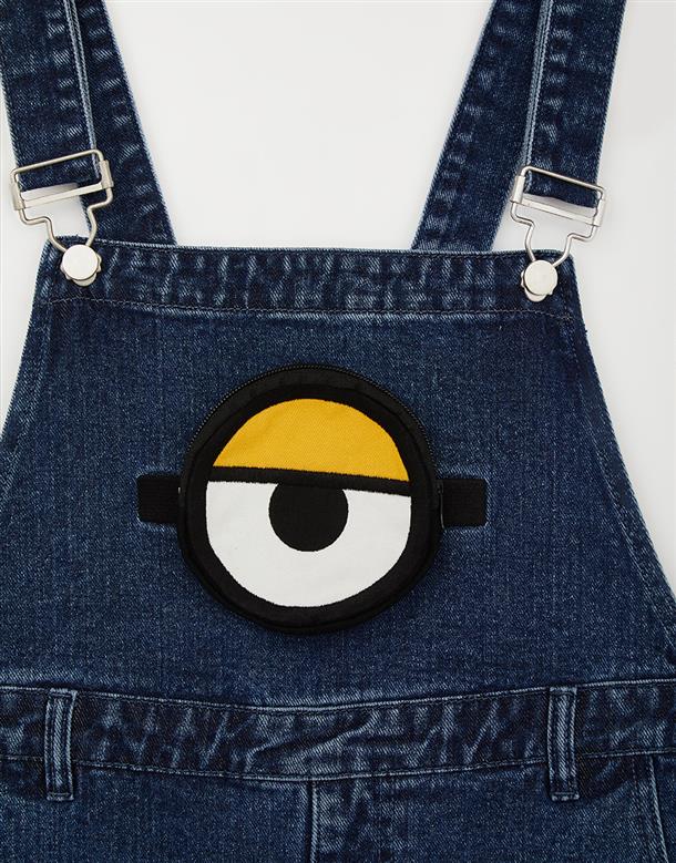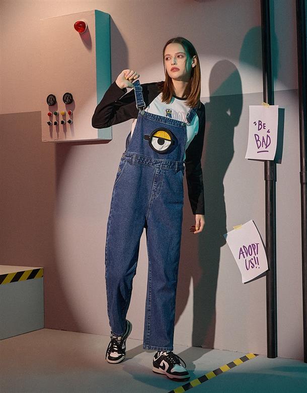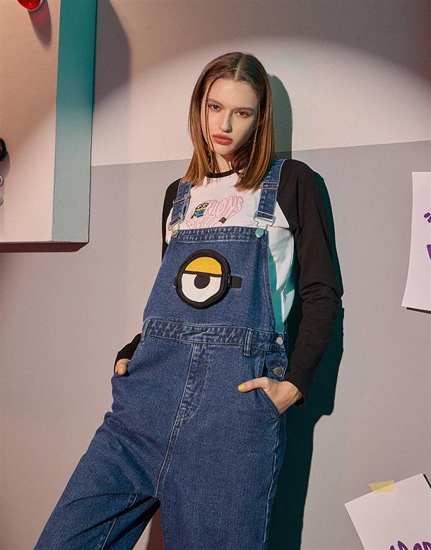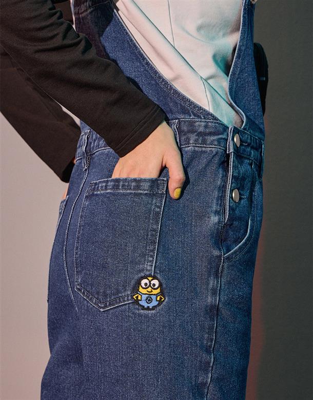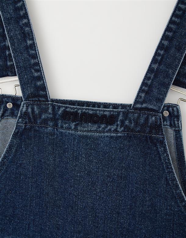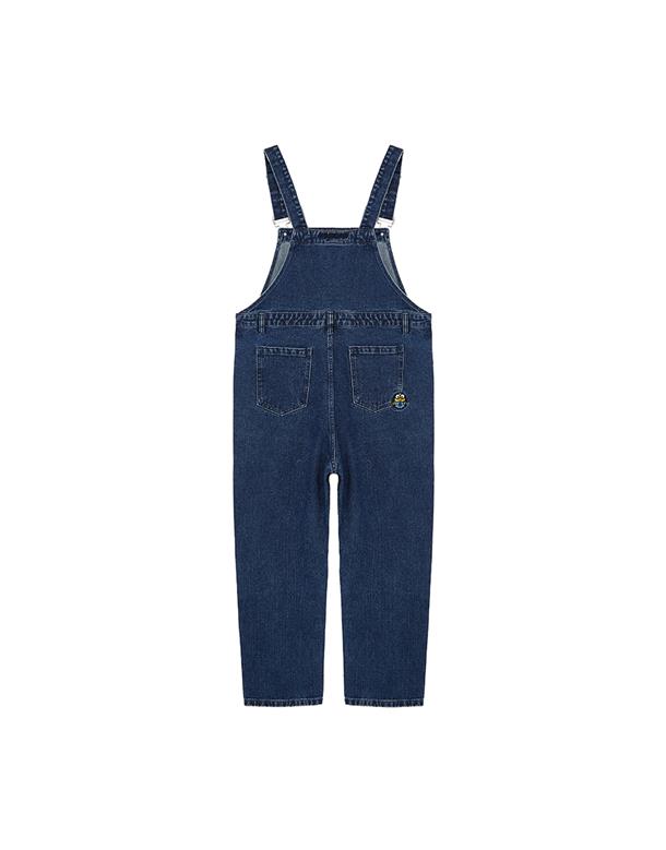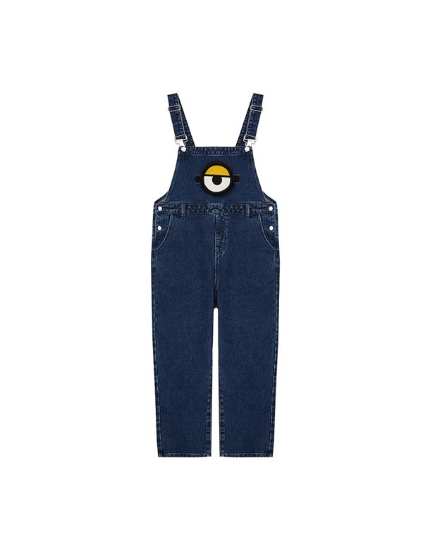 小小兵牛仔吊帶褲,立體拉鍊貼袋,細緻凸電繡設計,日常百搭款。