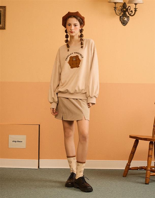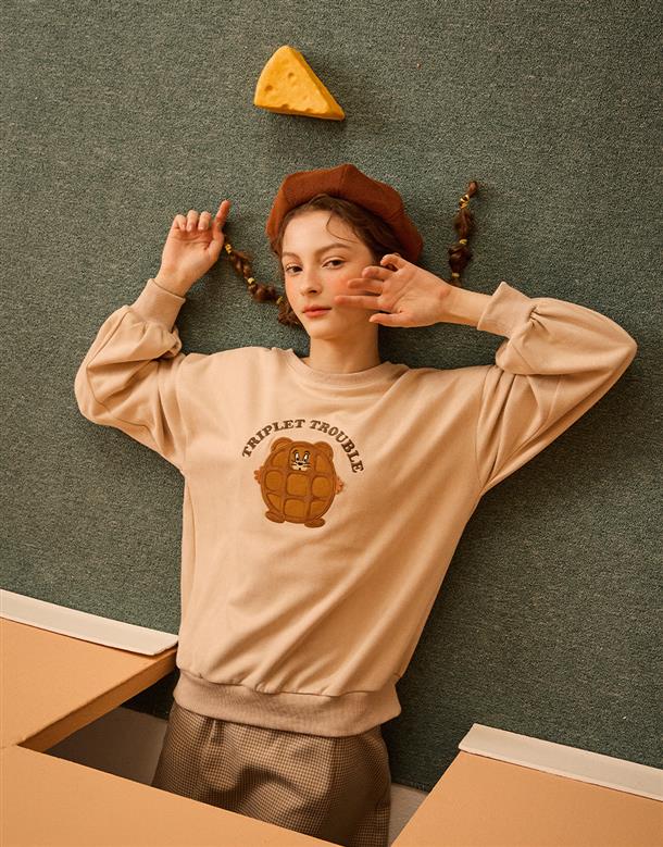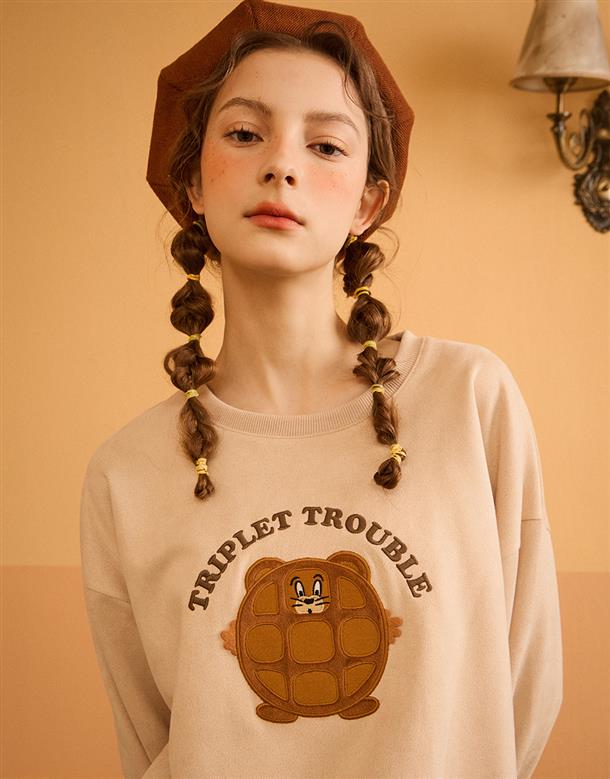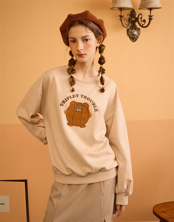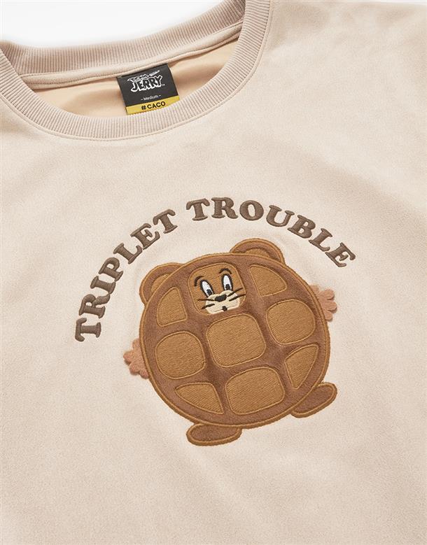 鬆餅傑利鼠貼布繡,麂皮絨面料大學TEE。