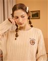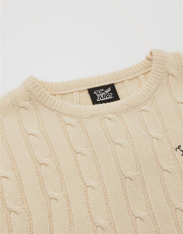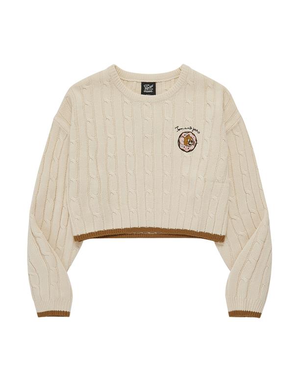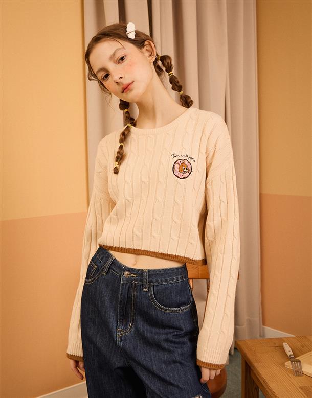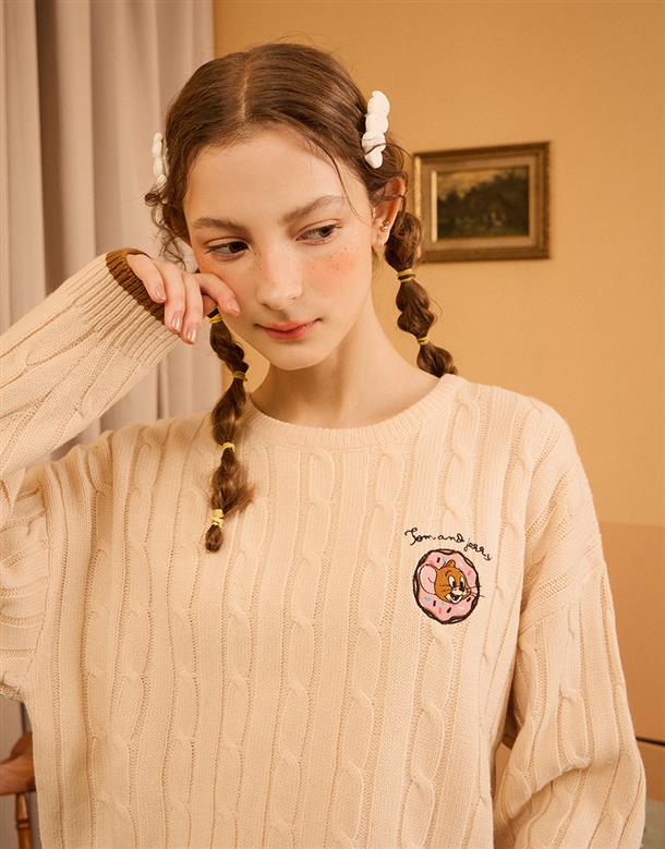 傑利鼠甜甜圈電繡,扭繩麻花設計,舒適仿羊毛柔軟穿搭款。