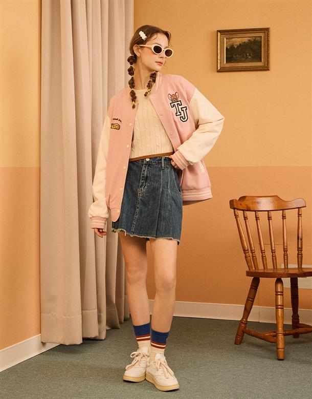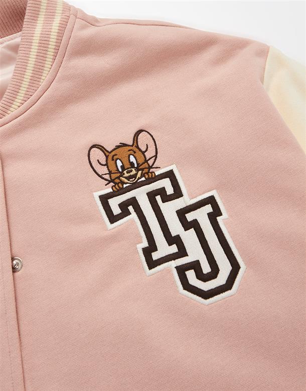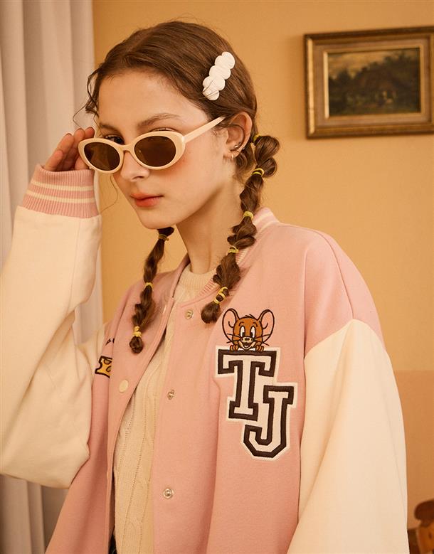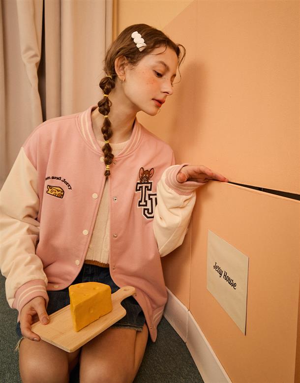 傑利鼠精緻電繡,撞色棒球外套,內刷毛保暖款。