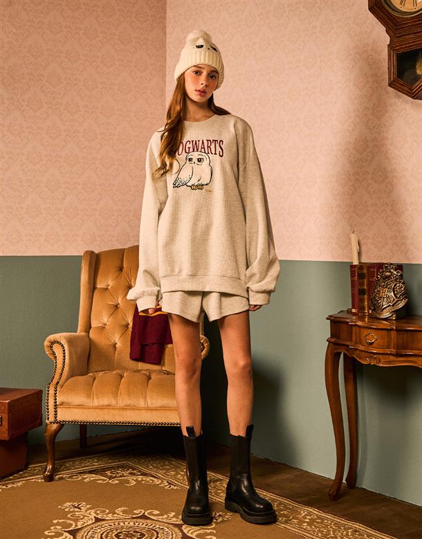 嘿美麂皮貼布繡工藝,特殊華夫格面料,舒適落肩寬鬆版套裝。