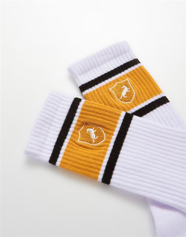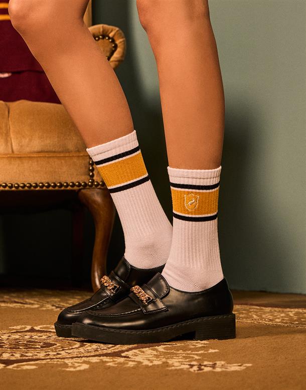 哈利波特系列,赫夫帕夫學院徽章電繡,撞色中長襪,中性舒適穿搭款。