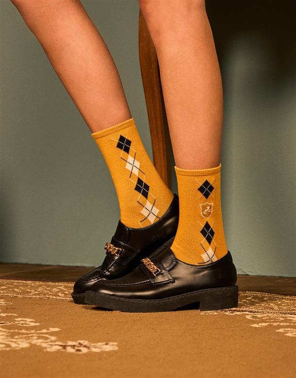 哈利波特系列,赫夫帕夫學院徽章電繡,撞色菱格紋學院提花,中性舒適穿搭款。