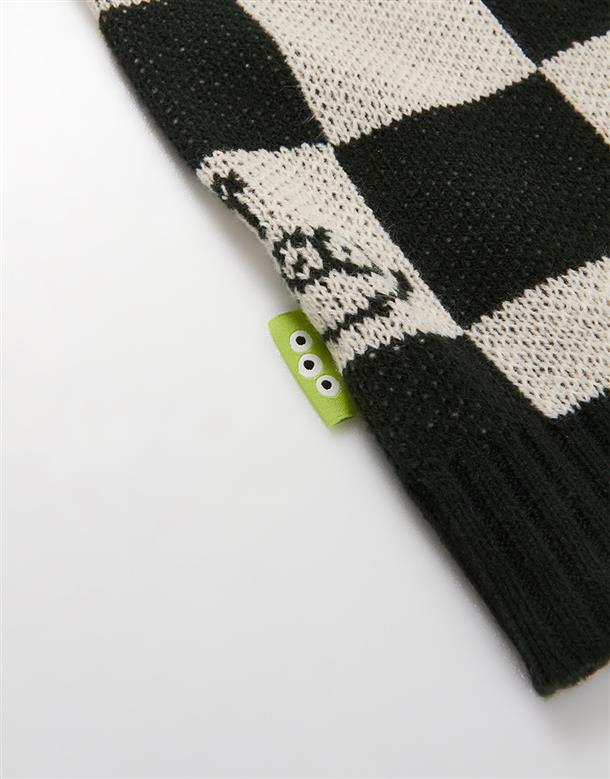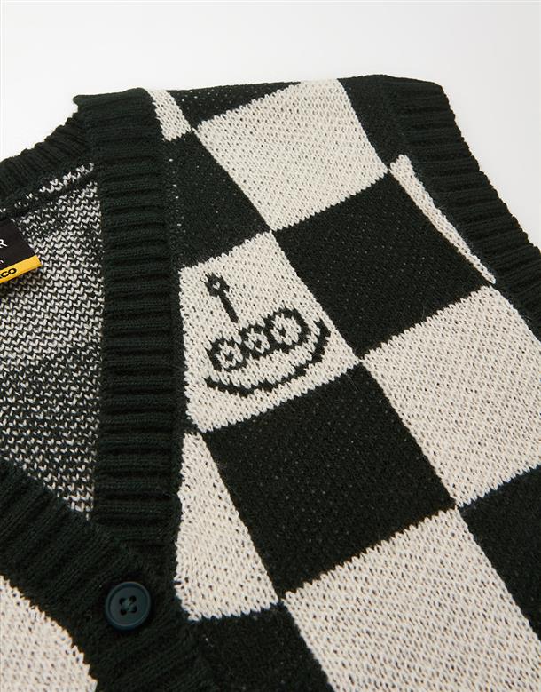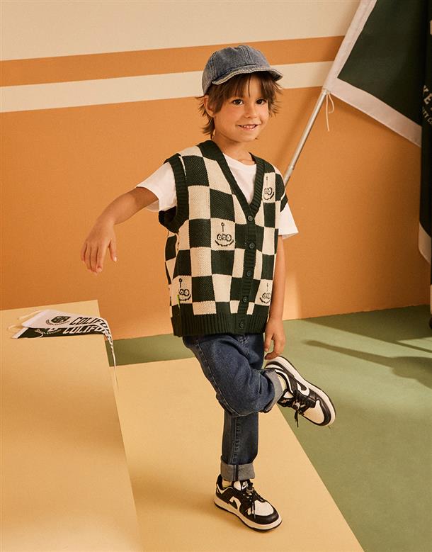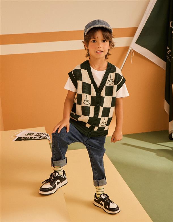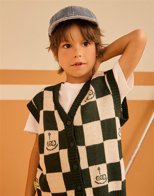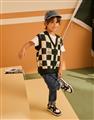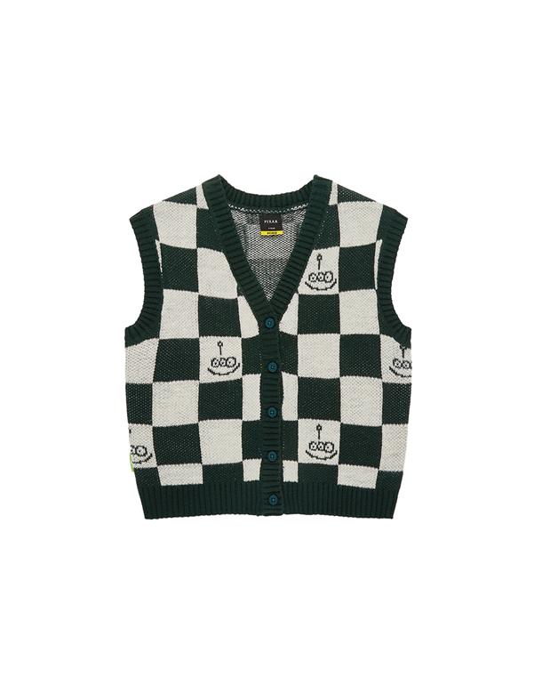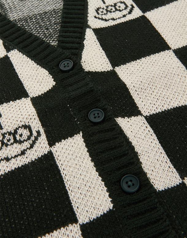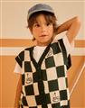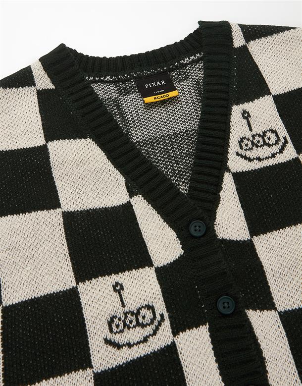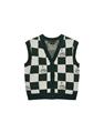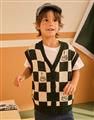 三眼怪棋盤格提花撞色背心,舒適柔軟保暖款。