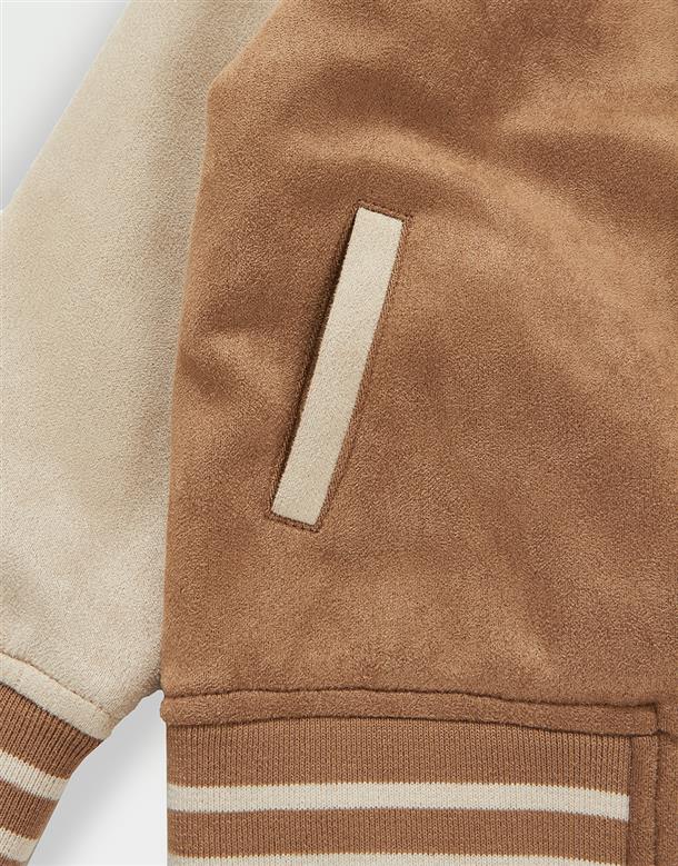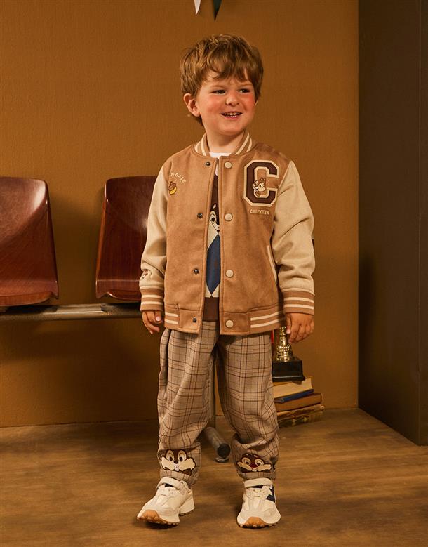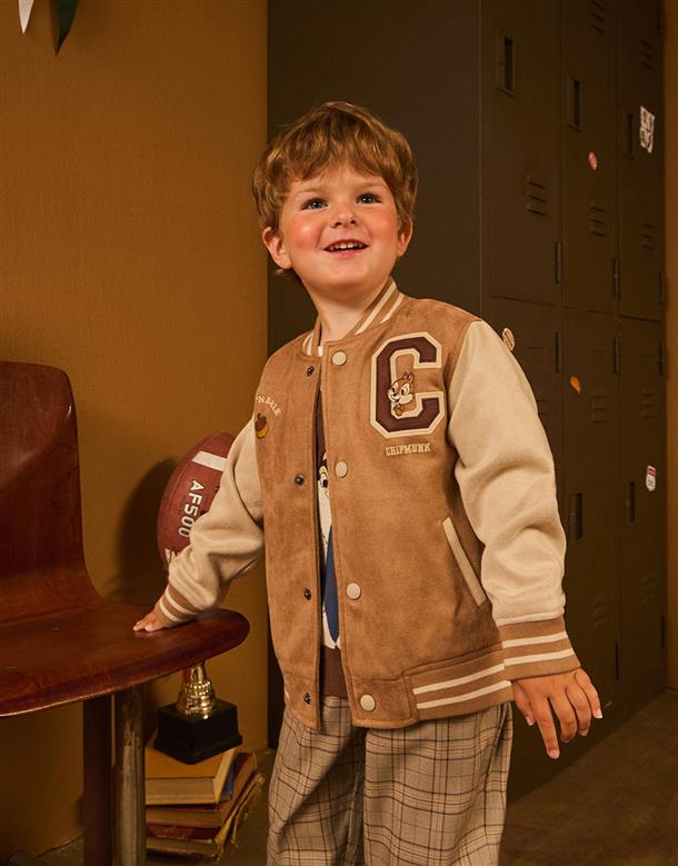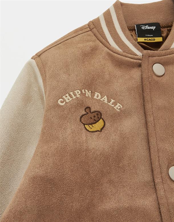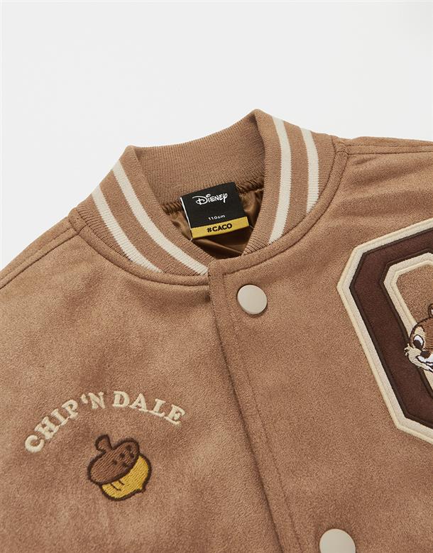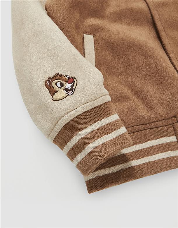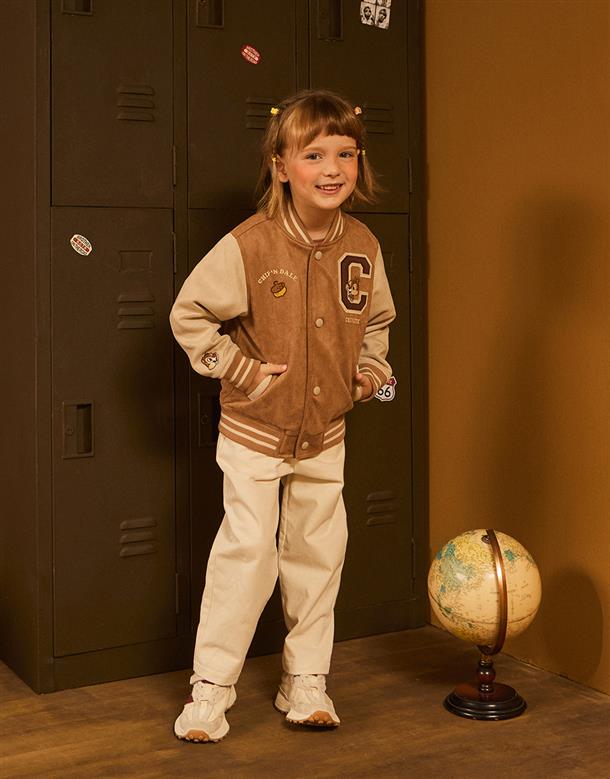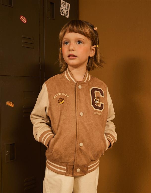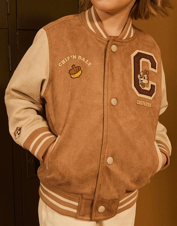 奇奇蒂蒂系列,撞色棒球外套,精緻貼布繡花,桃皮絨面料。