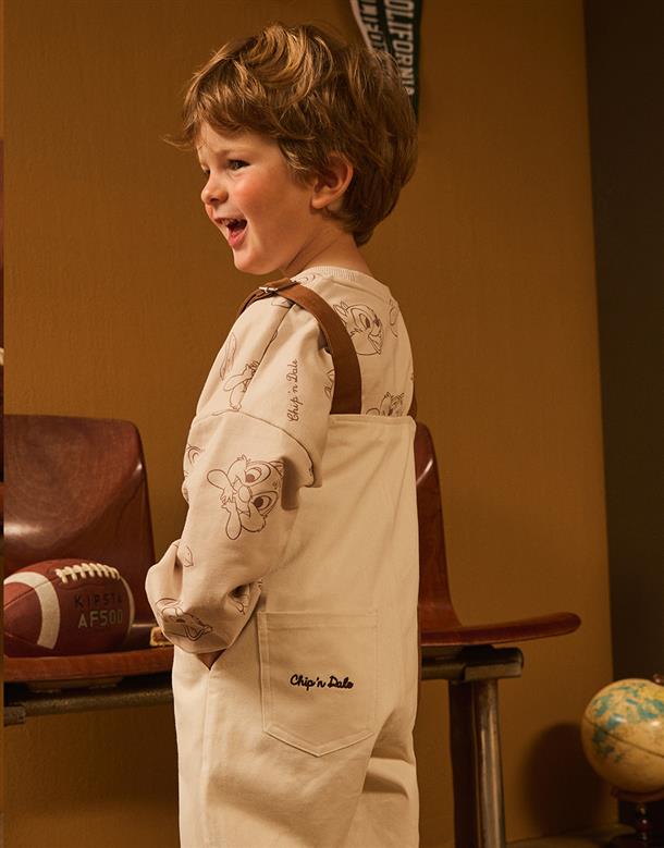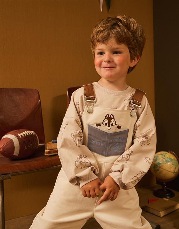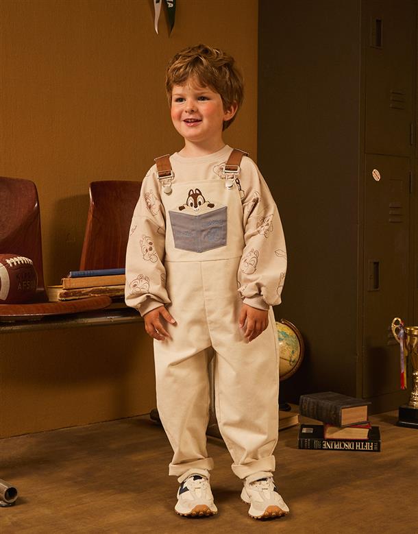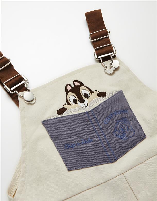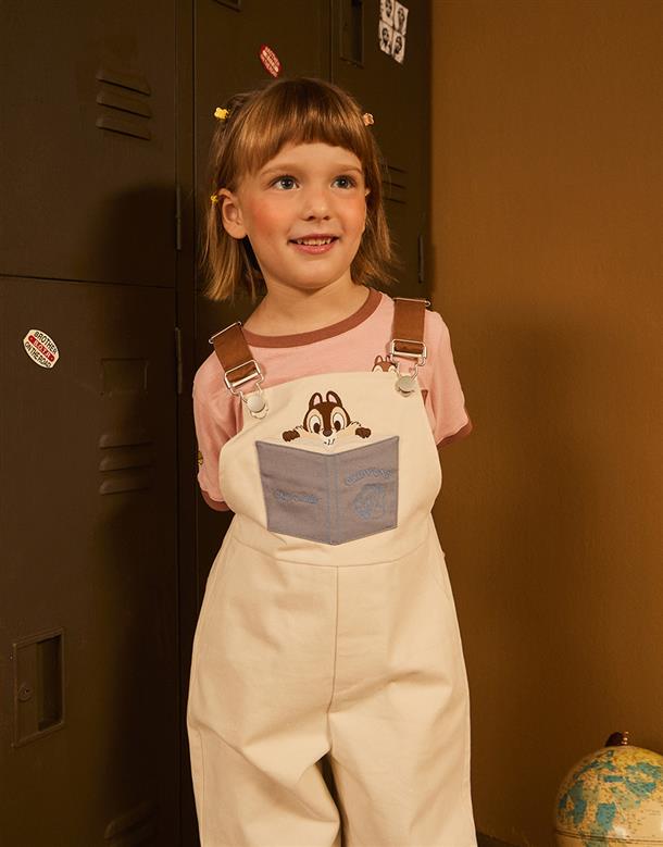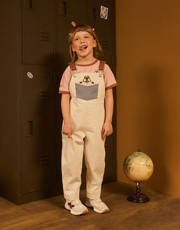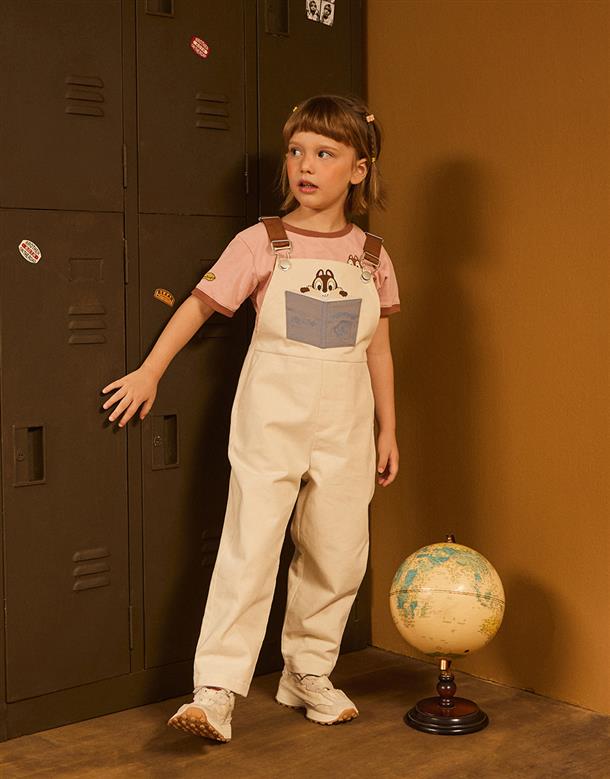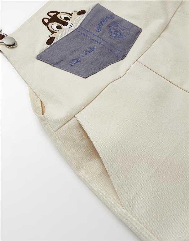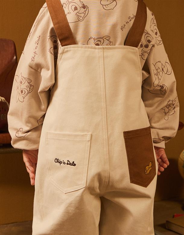 奇奇蒂蒂系列,趣味口袋,斜紋洗水吊帶褲,撞色率性連身款。