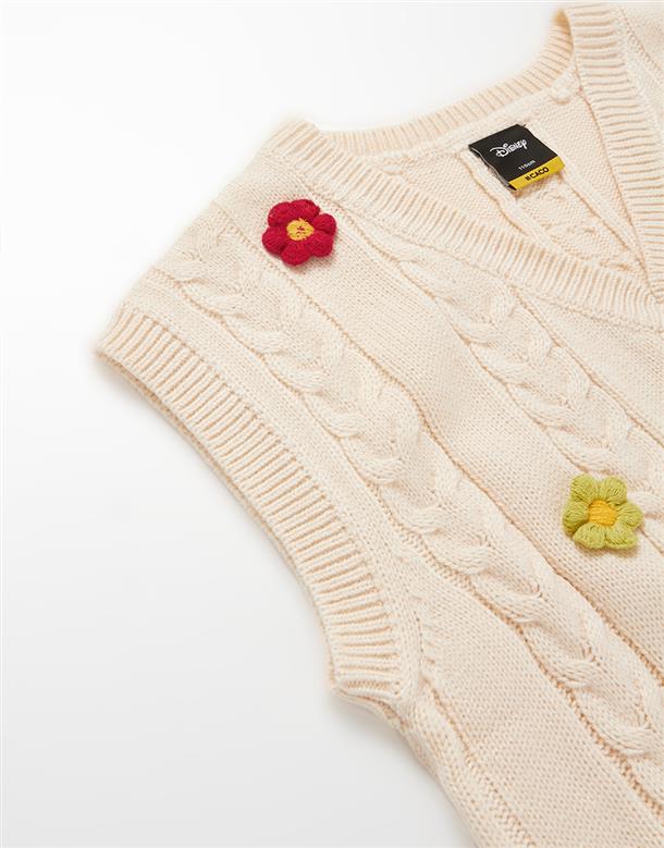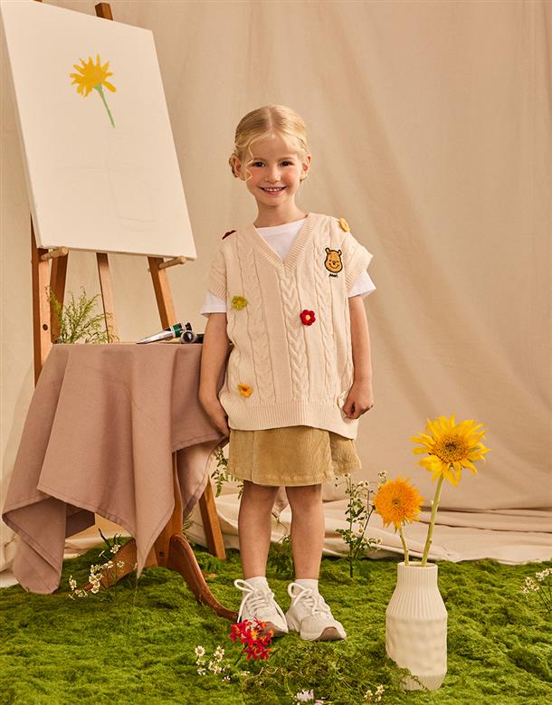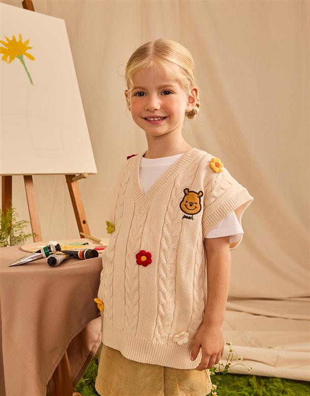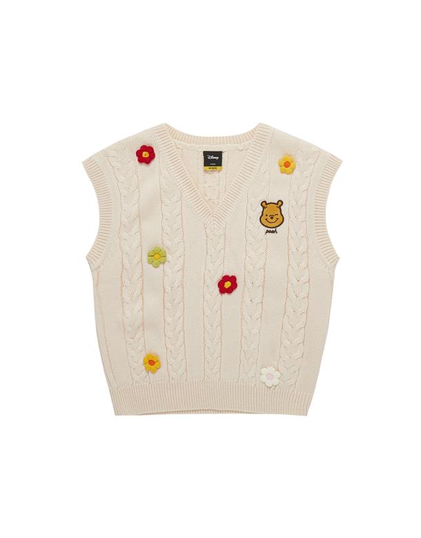 小熊維尼立體花朵造型毛織背心。