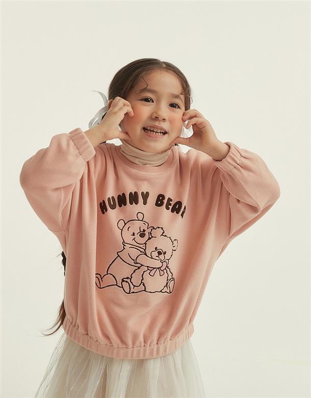 維尼抱熊熊大圖電繡,QQ毛舒適上衣。