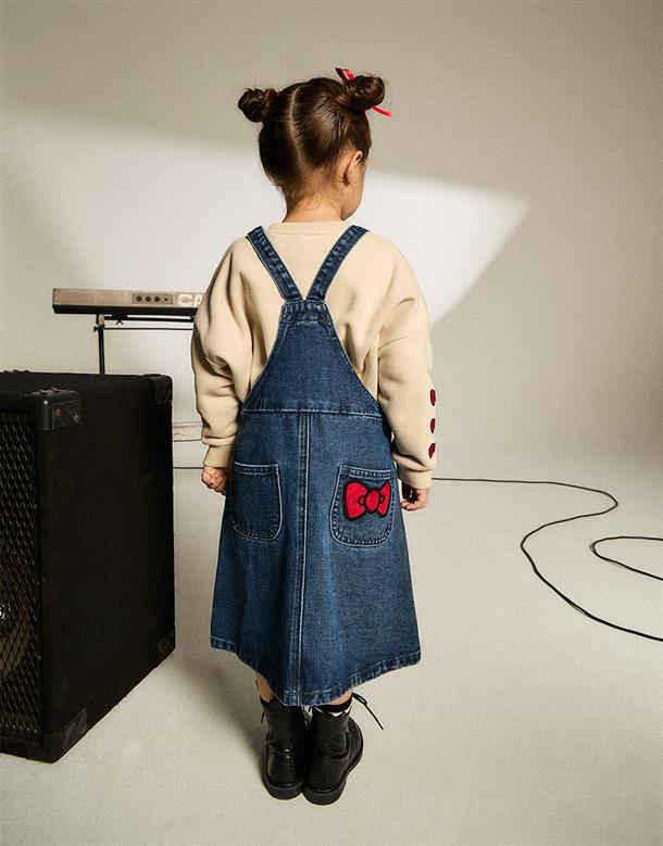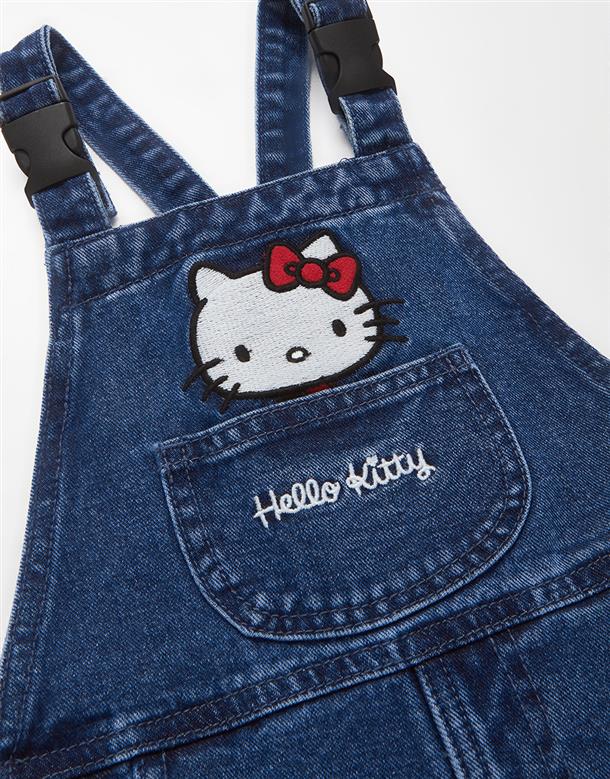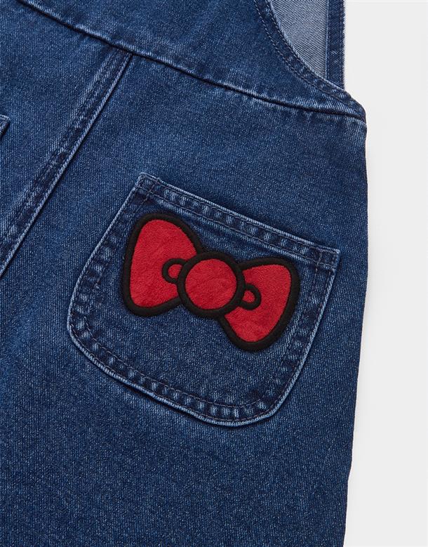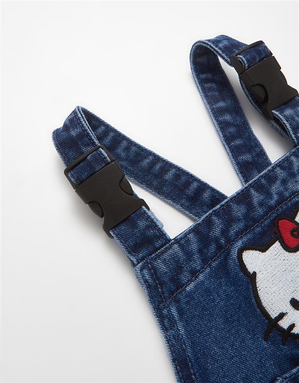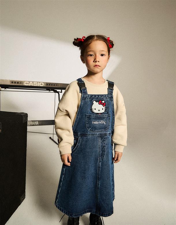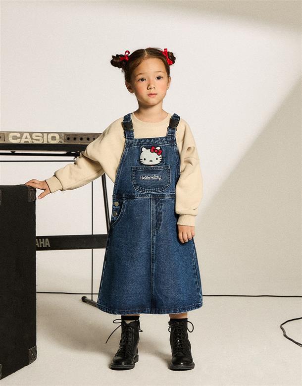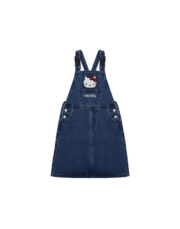 凱蒂貓精緻貼布電繡,牛仔吊帶裙。