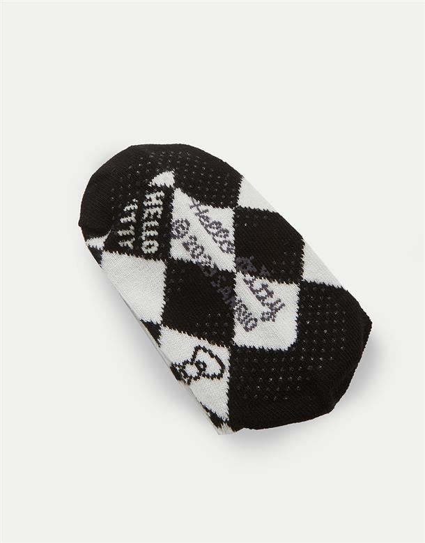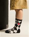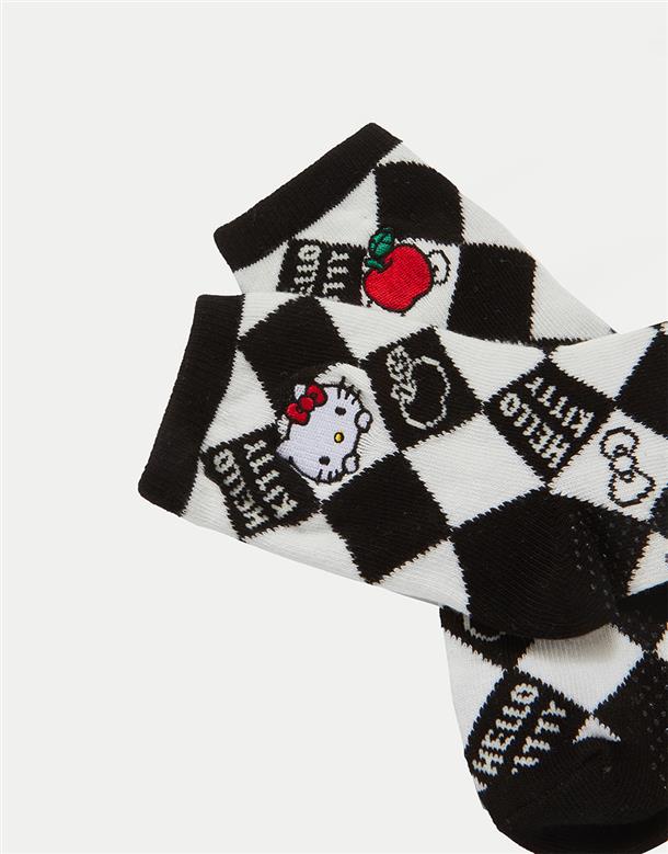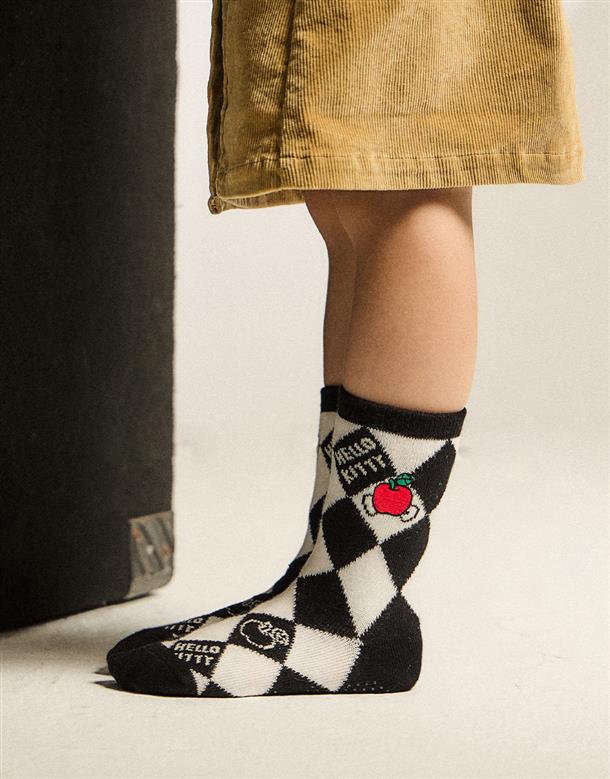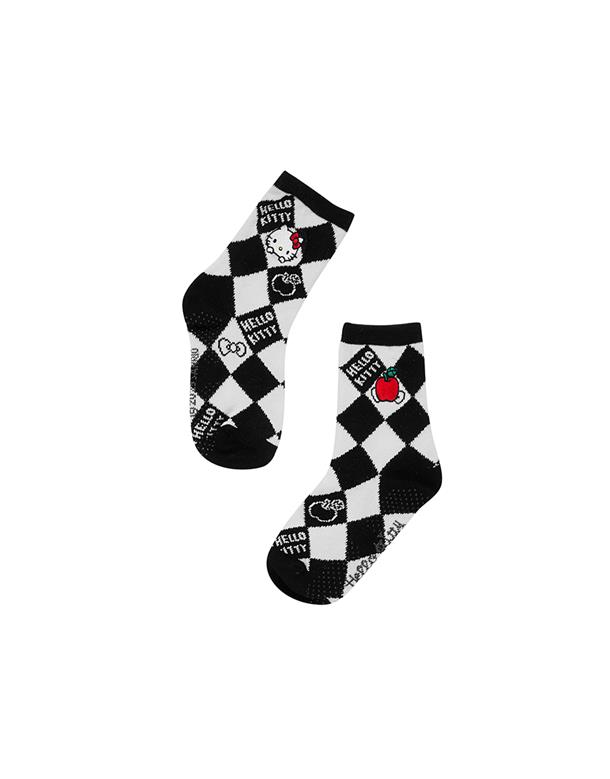 MIT凱蒂貓系列,撞色格紋提花,精緻電繡,棉質中長襪。