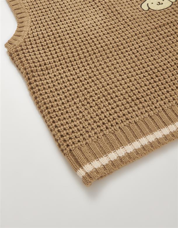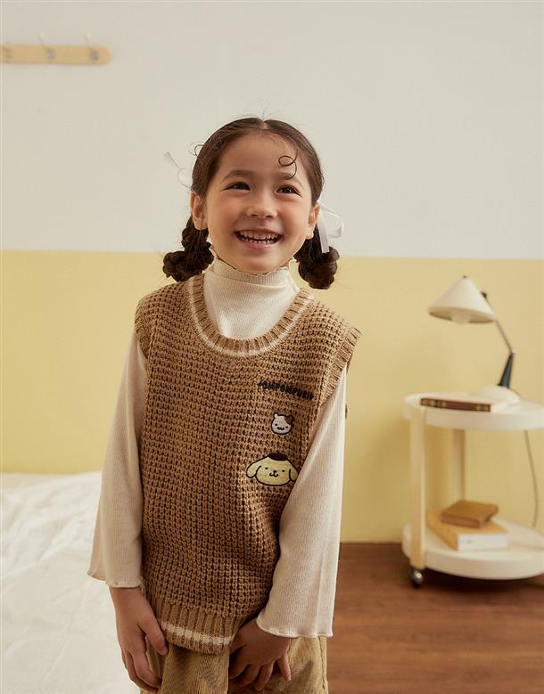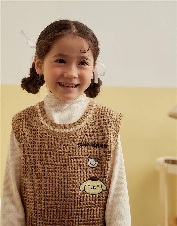 柔軟毛織撞色設計,布丁狗圖像電繡,百搭毛衣。