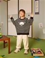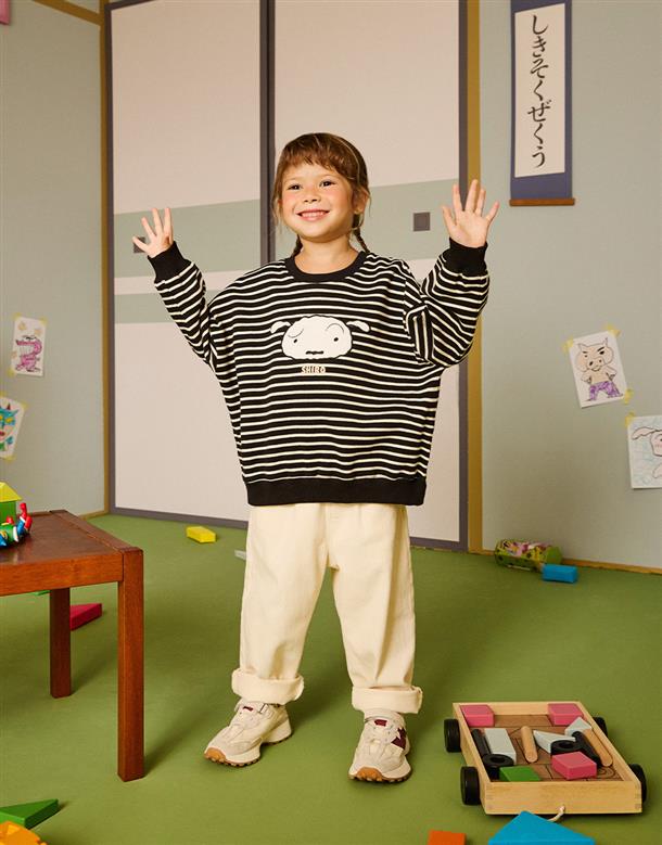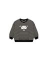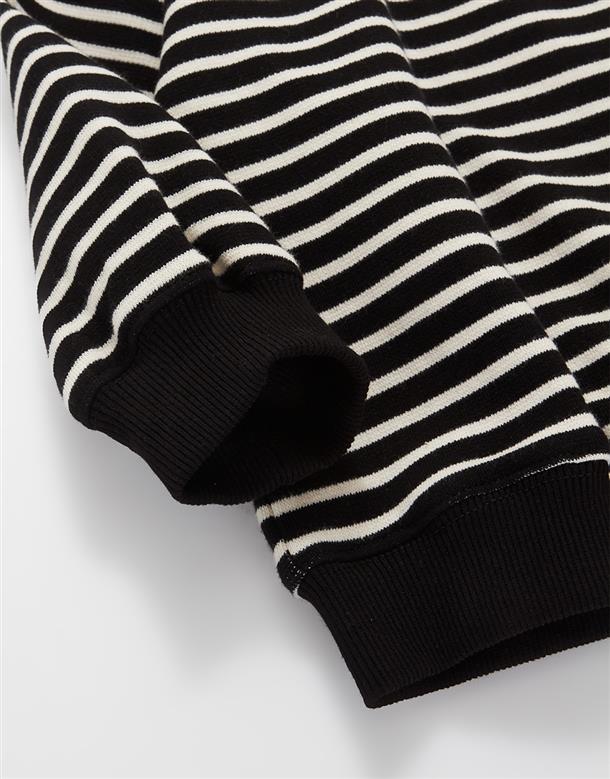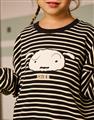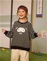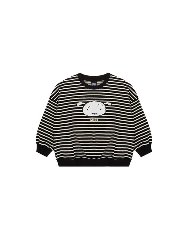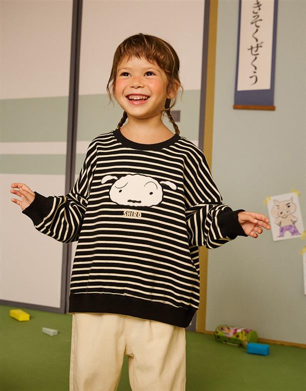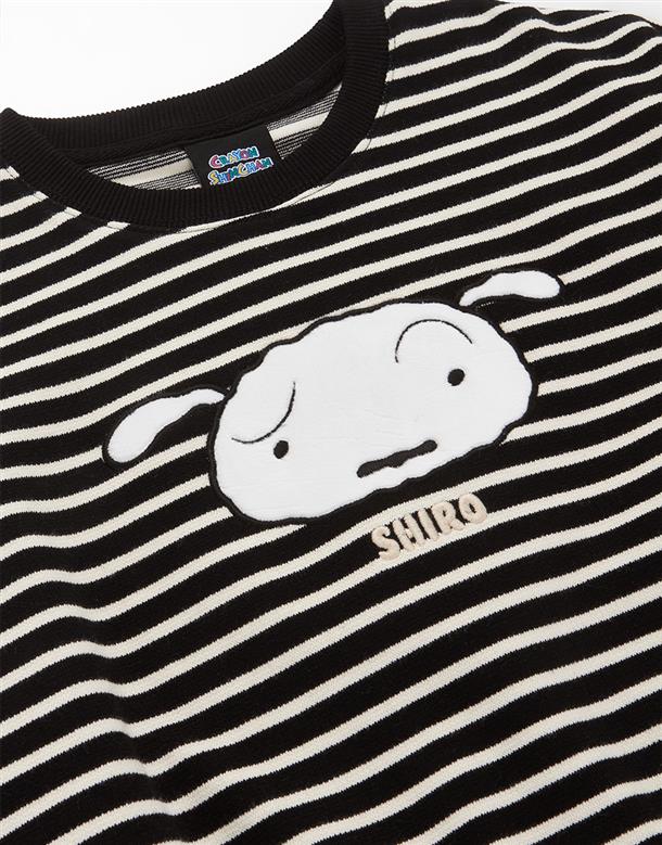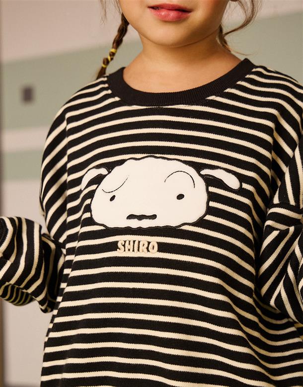 小白大臉貼布繡,舒適棉質條紋上衣。