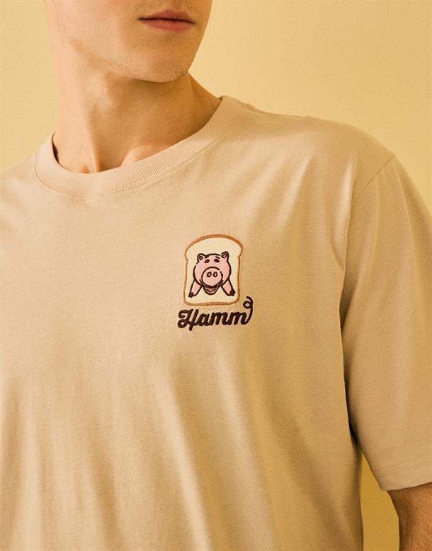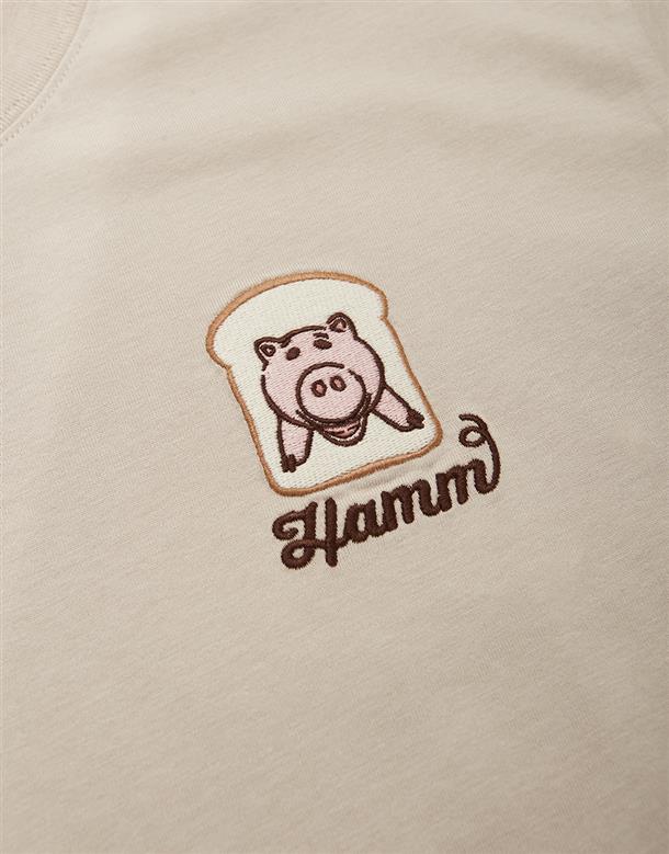 皮克斯甜點系列,火腿豬質感電繡,舒適爽棉面料上衣。
