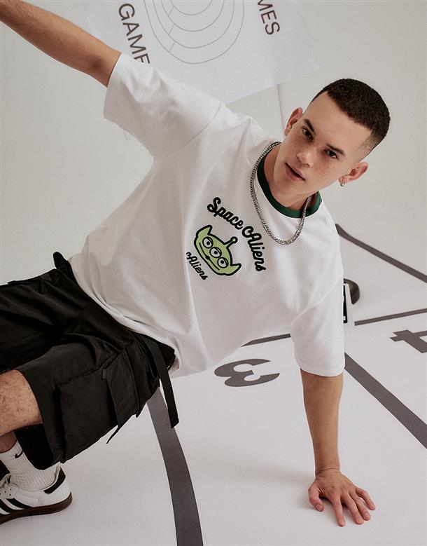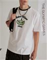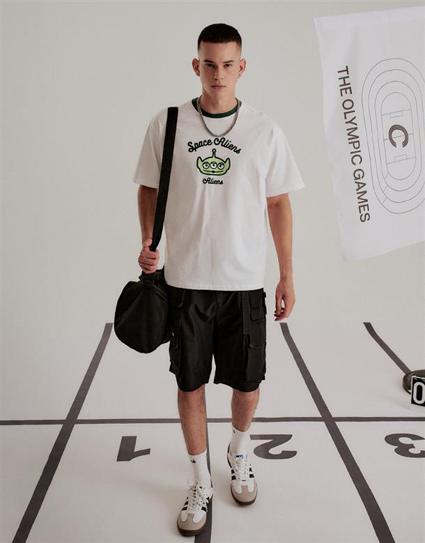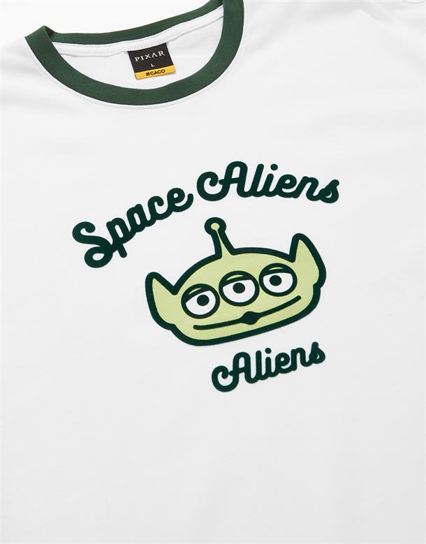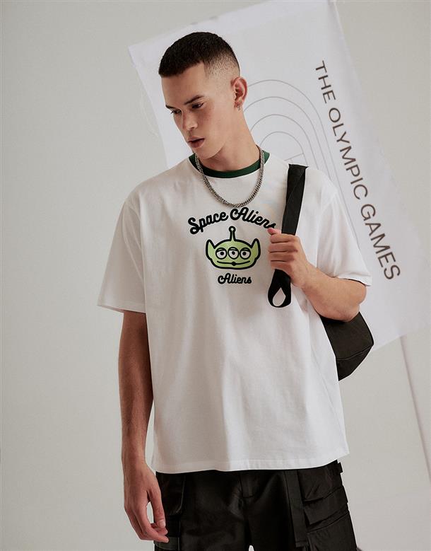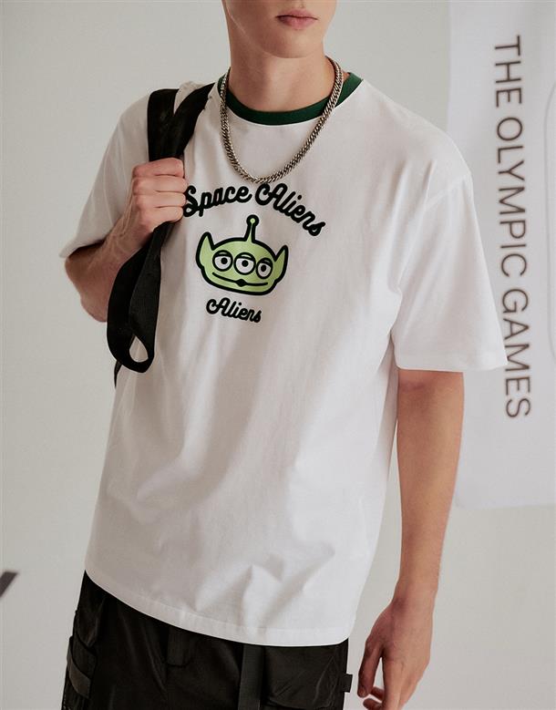 三眼怪落肩寬鬆上衣,質感植絨印花,舒適爽棉面料。