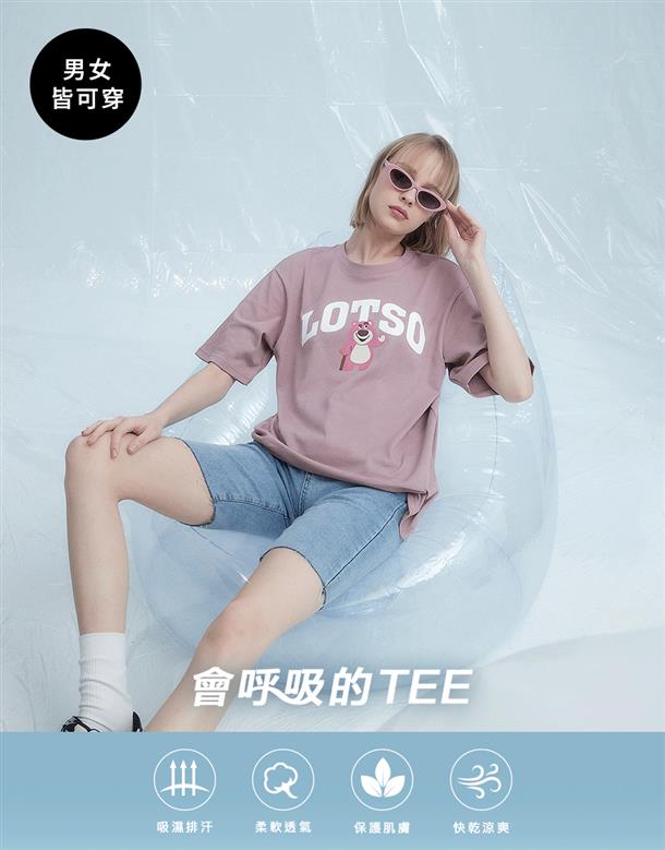 訂製機能透氣面料,內層採用吸濕排汗原紗織製而成,落肩寬鬆版熊抱哥設計短T