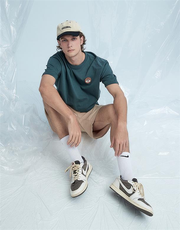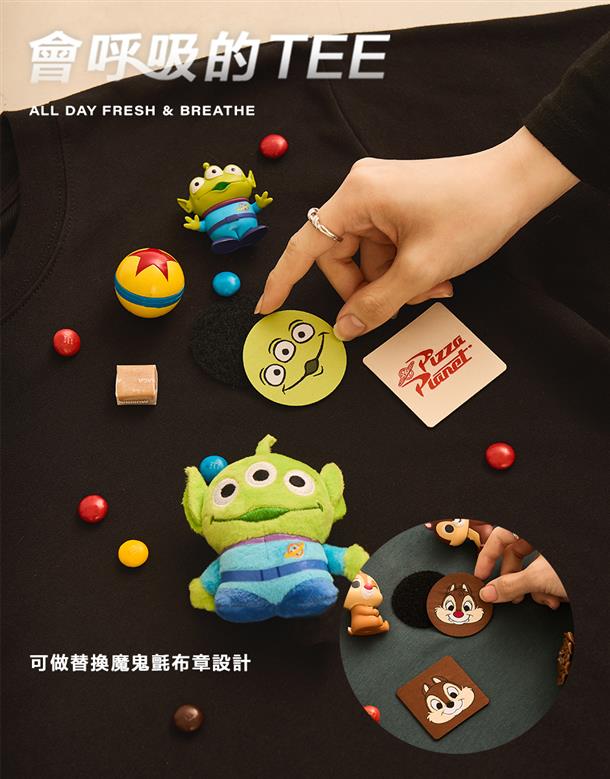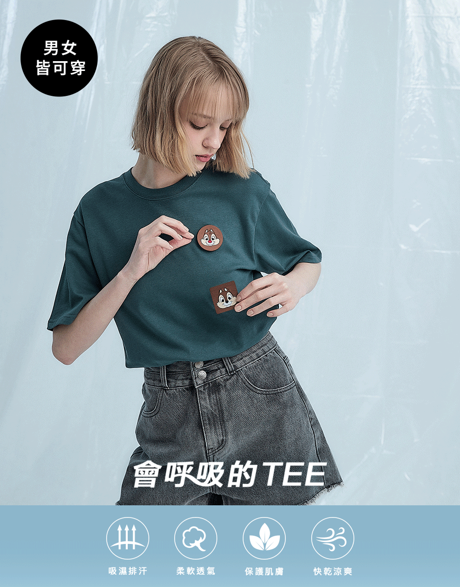 訂製機能透氣面料,內層採用吸濕排汗原紗織製而成,落肩寬鬆版奇奇蒂蒂設計短T