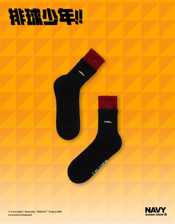 NAVY X 排球少年動畫版期間限定,音駒高校造型穿搭雙色襪頭毛巾底球襪。