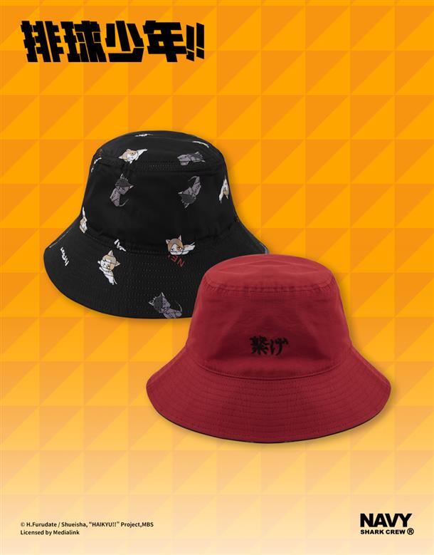 NAVY X 排球少年動畫版期間限定,音駒吉祥物滿版雙面戴漁夫帽。