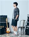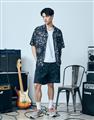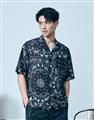 NAVY滿版變形蟲夏季輕薄面料穿搭款,開襟領短袖襯衫。