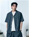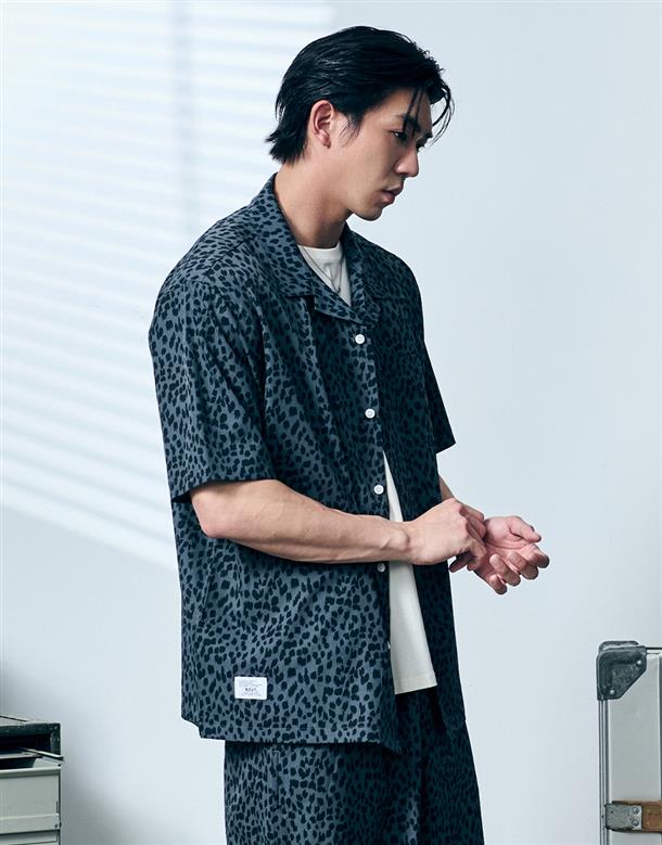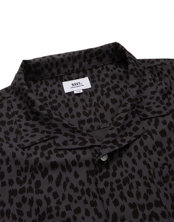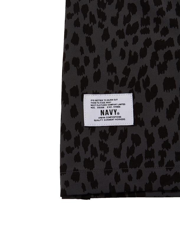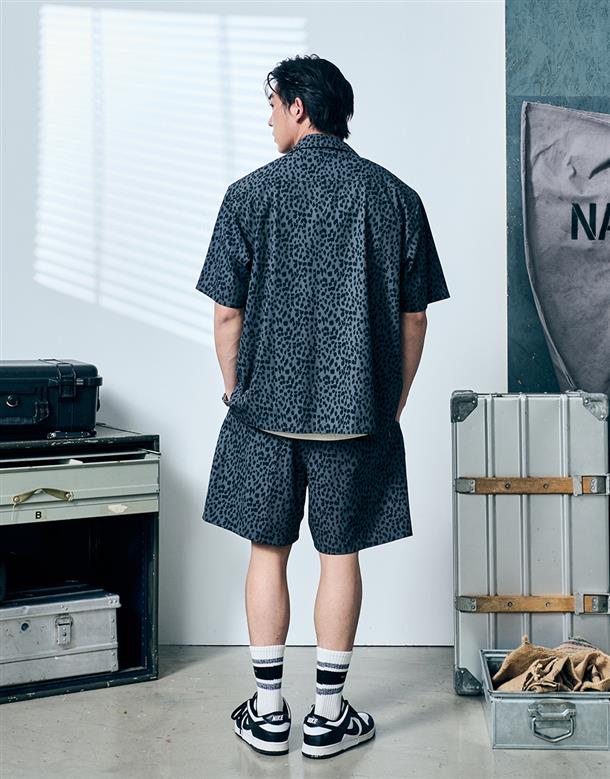 夏季NAVY豹紋滿版印花,古巴領開襟短袖襯衫