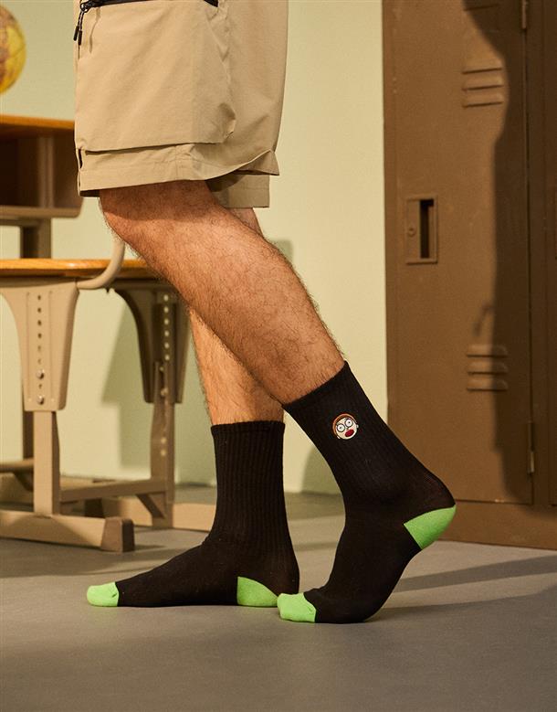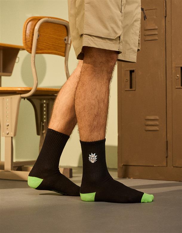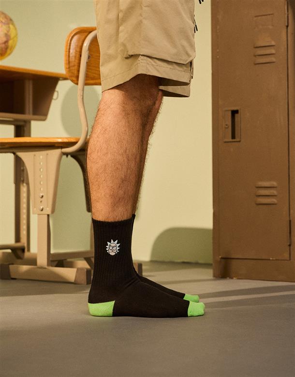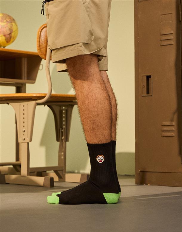 瑞克和莫蒂電繡撞色緹花中長襪。