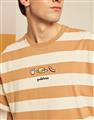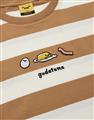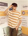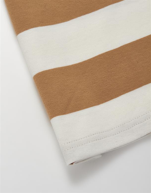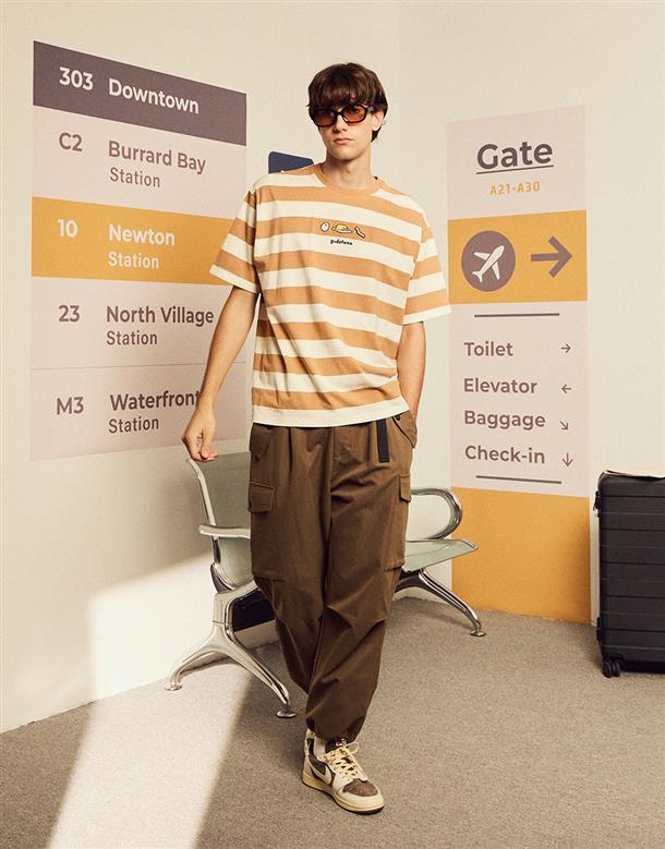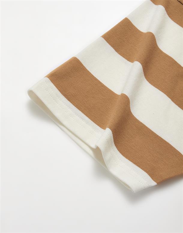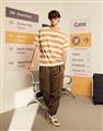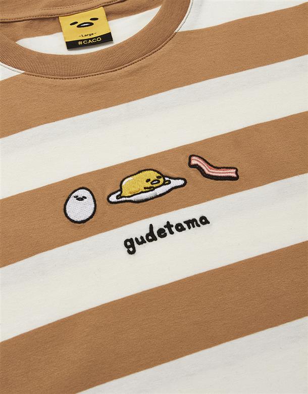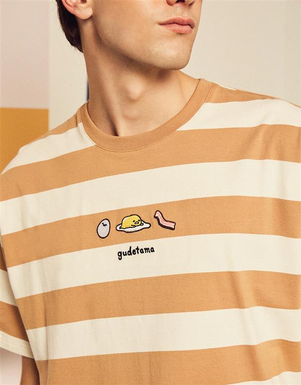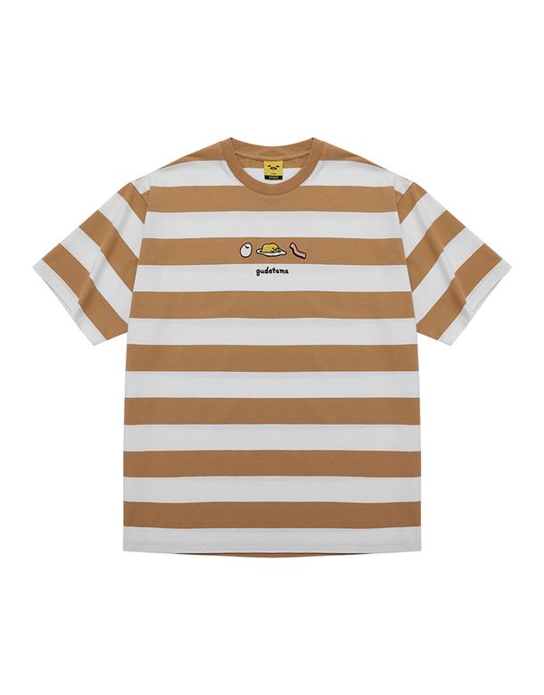 蛋黃哥慵懶電繡休閒條紋衣,質感落肩寬鬆T恤。