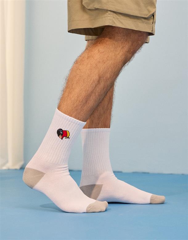 廣志小新趣味電繡,特殊抗菌材質中長襪。